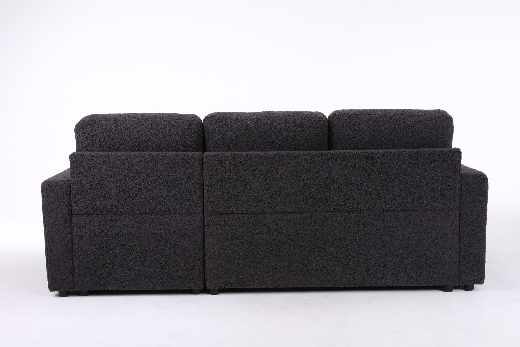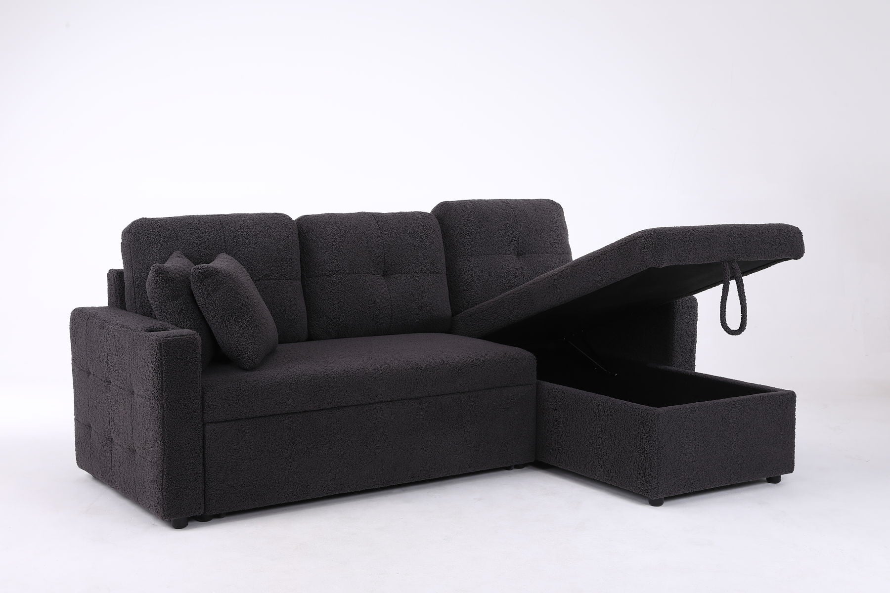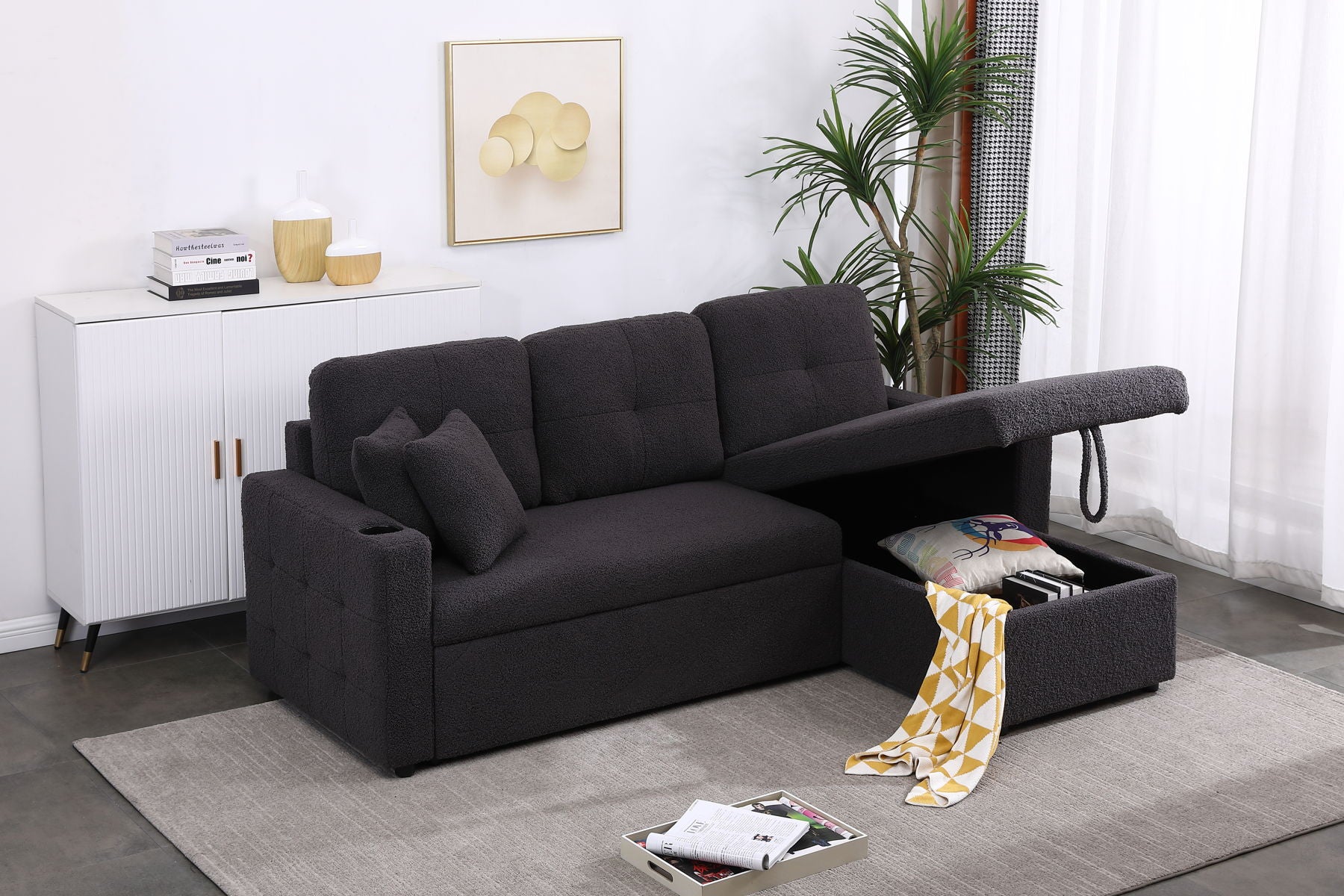Lambswool - Pull Out Sleeper Sectional Sofa With Storage Chaise - Dark Gray