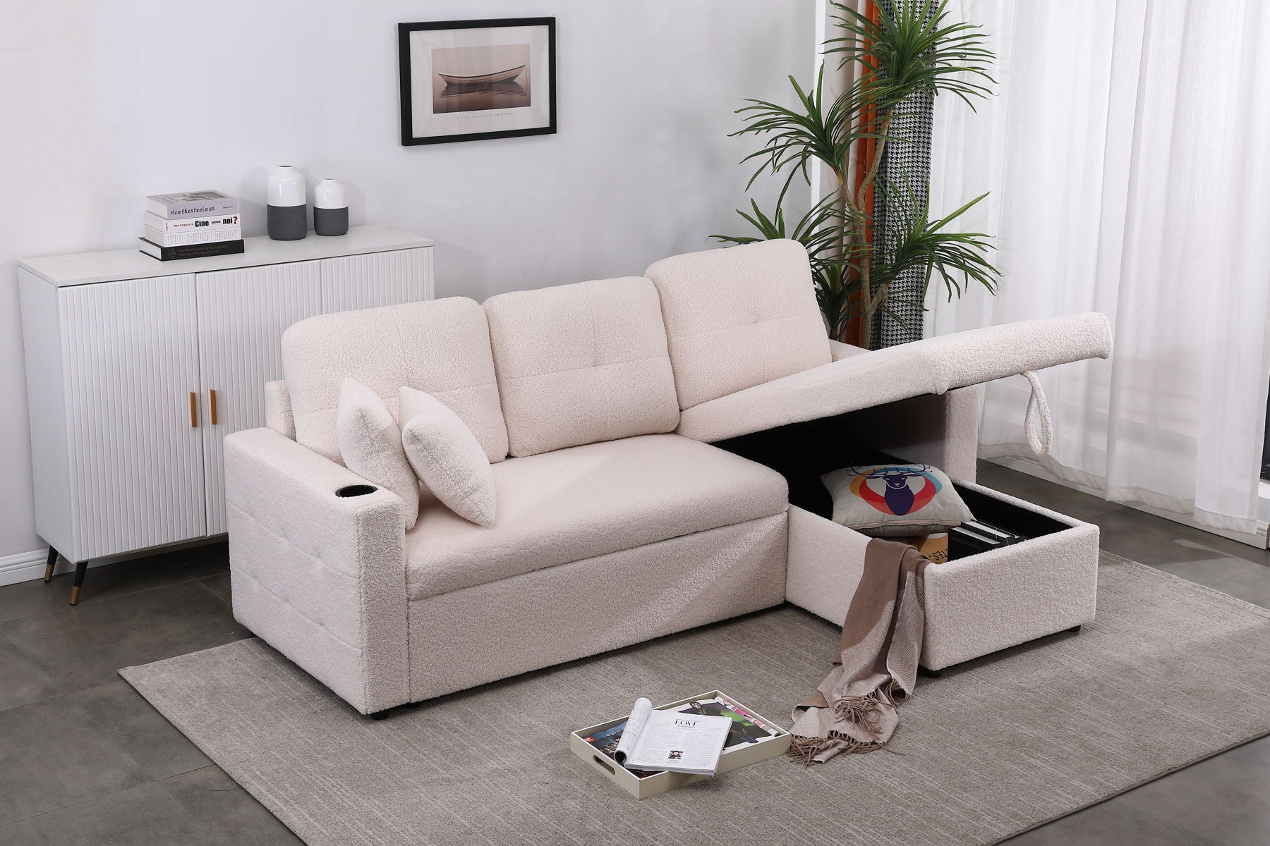 Lambswool - Pull Out Sleeper Sectional Sofa With Storage Chaise