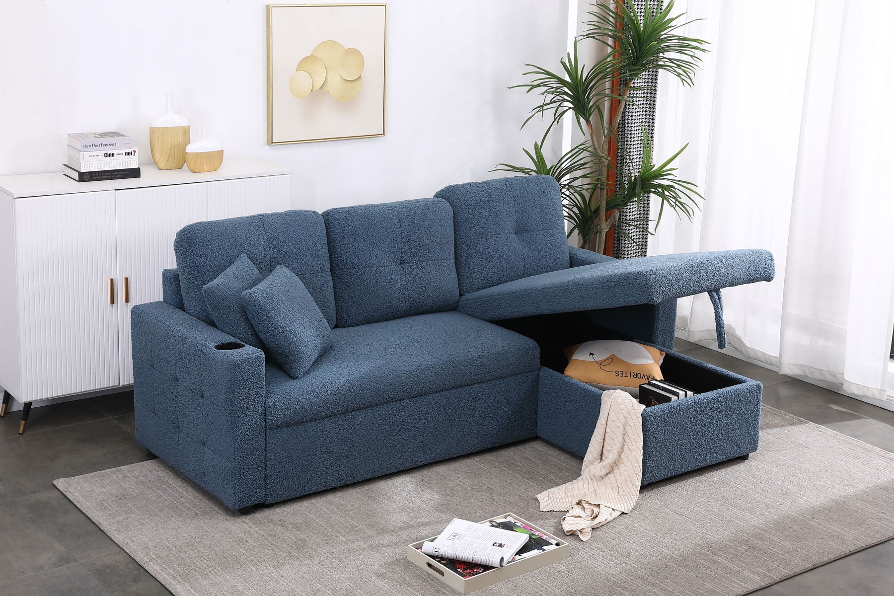 Lambswool - Pull Out Sleeper Sectional Sofa With Storage Chaise - Blue