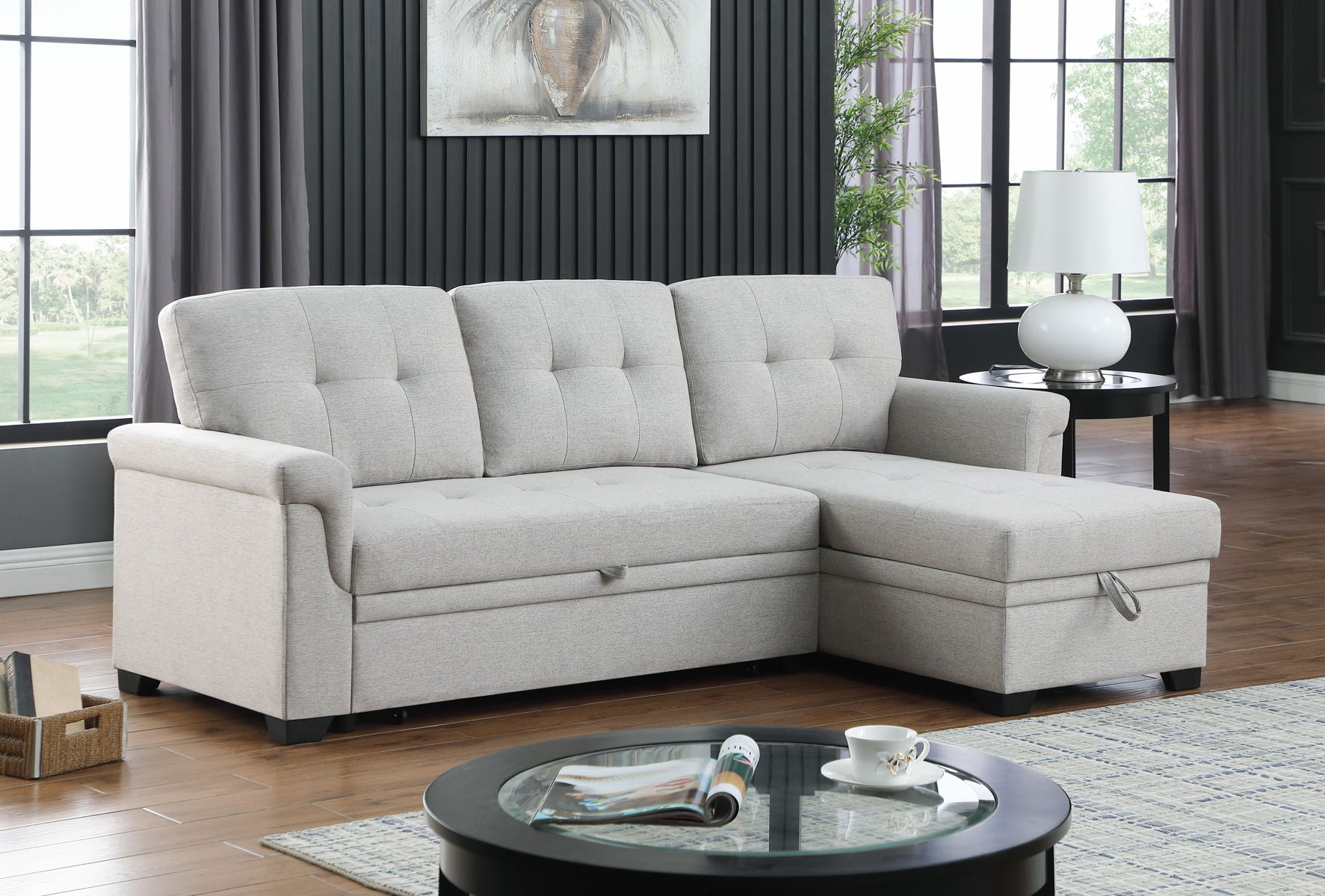 Lucca - Linen Reversible Sleeper Sectional Sofa With Storage Chaise