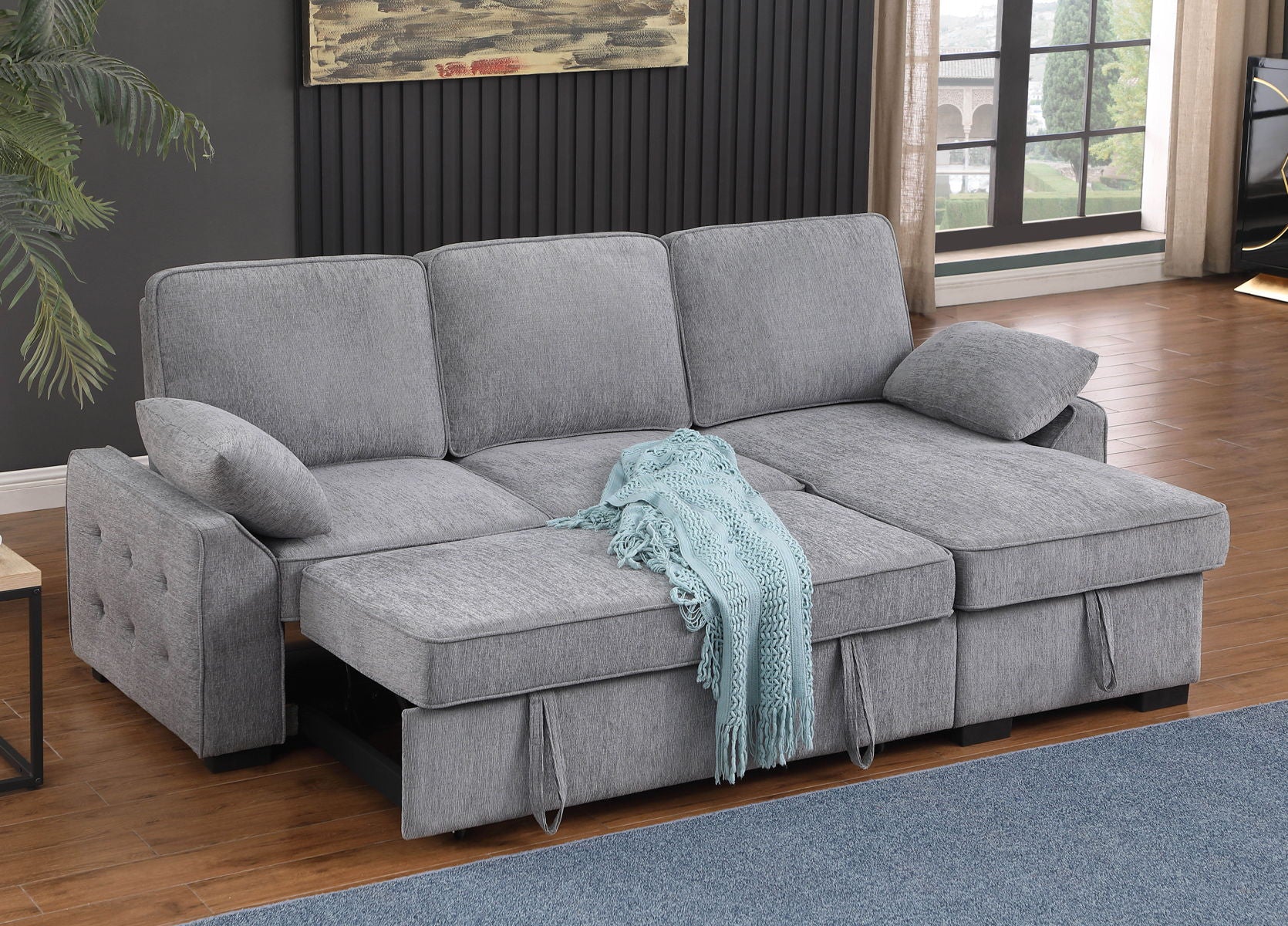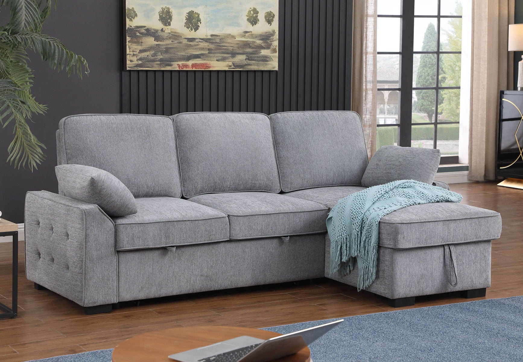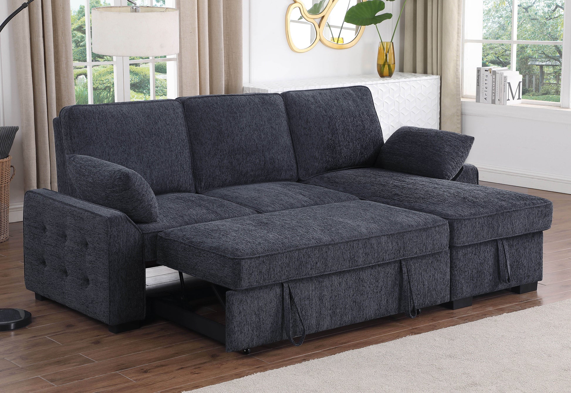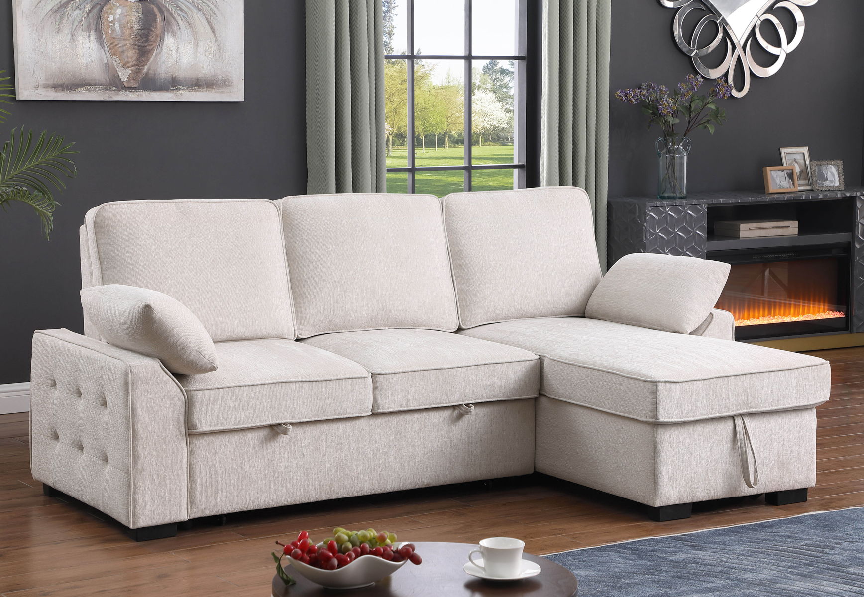 Mackenzie - Chenille Fabric Sleeper Sectional With Right-Facing Storage Chaise