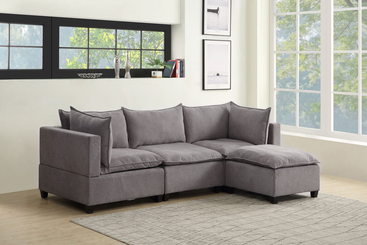 Madison - Fabric Reversible Sectional Sofa Ottoman - Light Gray