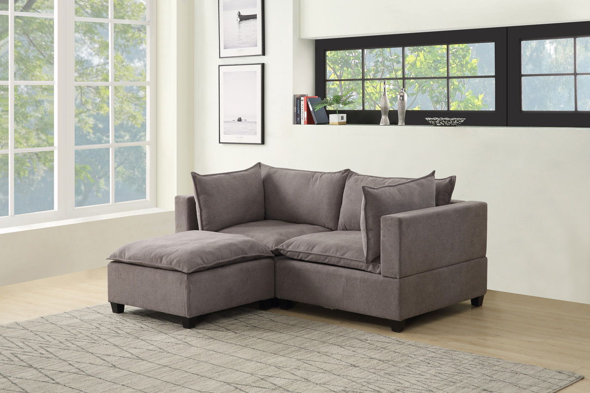 Madison - Fabric Sectional Loveseat Ottoman - Light Gray