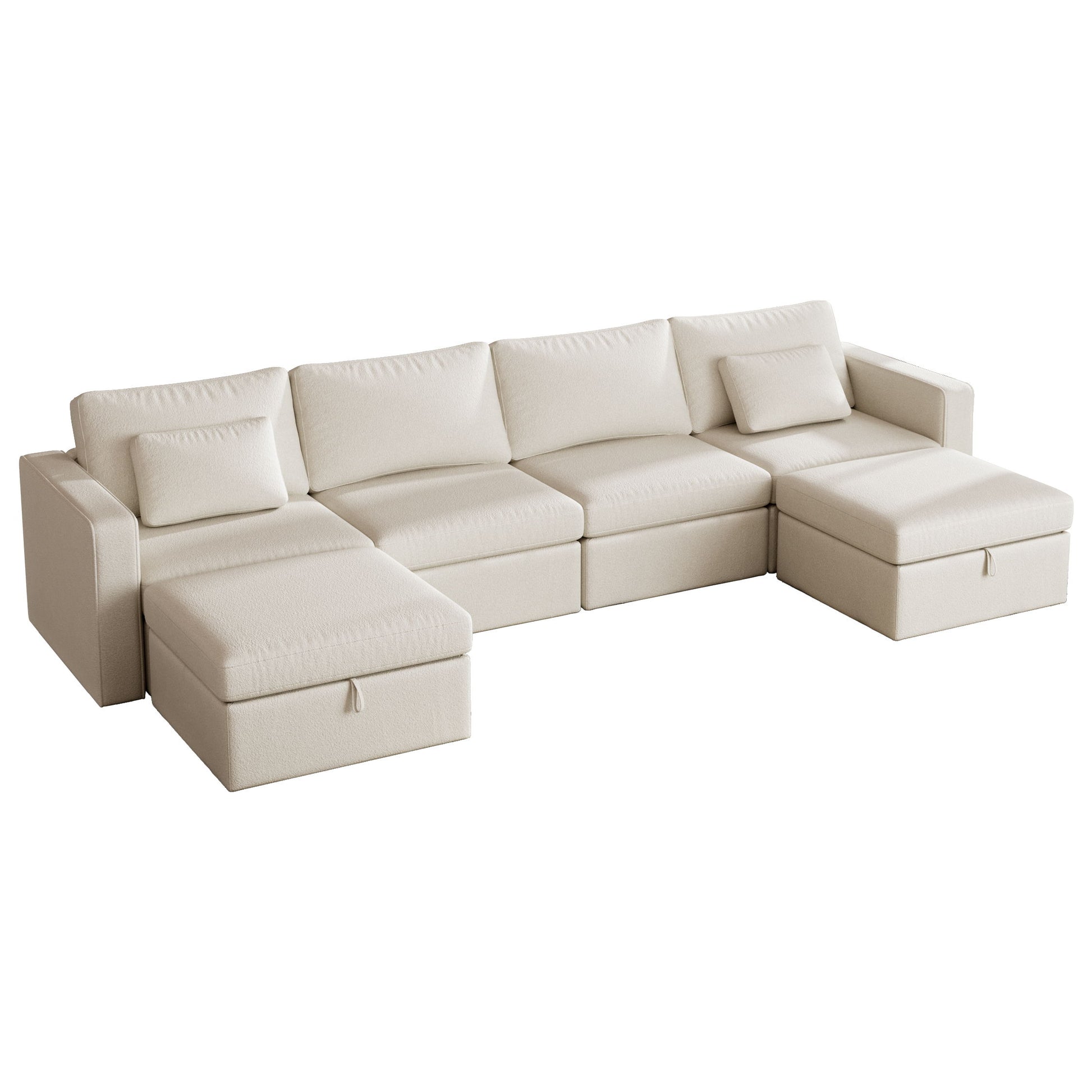 Modern Cotton Linen Modular Sectional Sofa, U Shape Convertible Sofa Set With Pillows, Oversized Sectional Couches With Storage Ottomans For Living Room, Loft, Apartment, Office 6 Seats - White