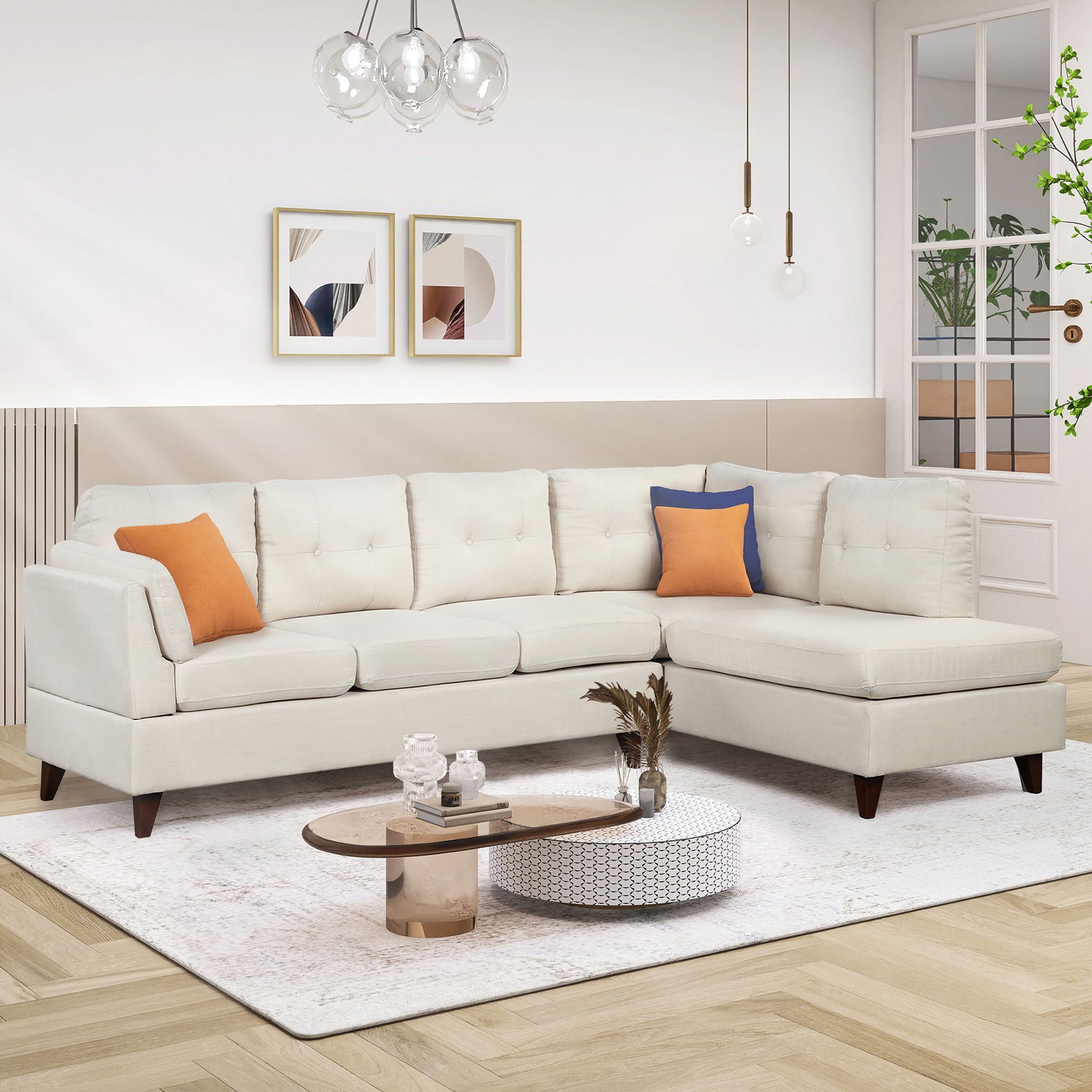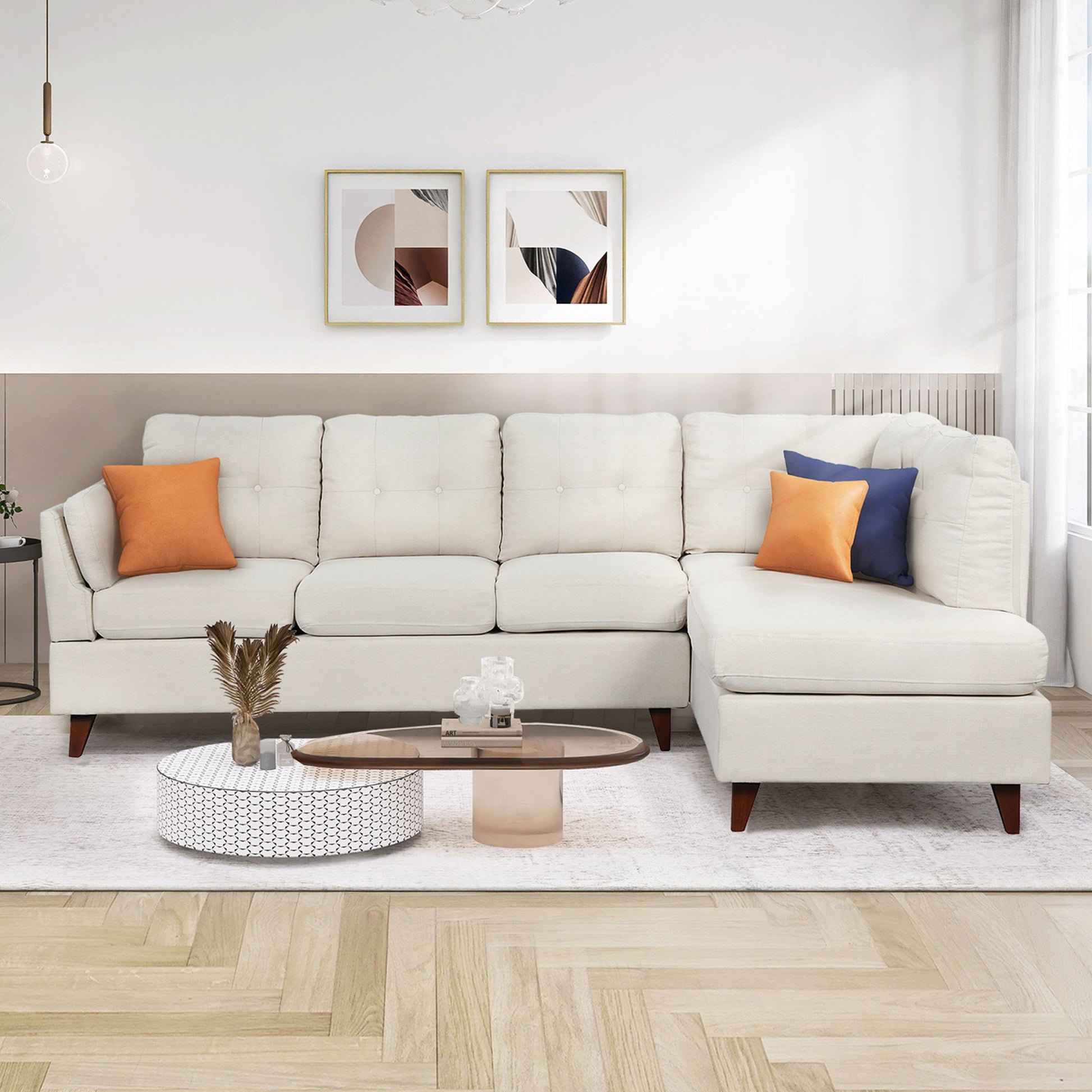 Modern Linen Fabric Sofa, L-Shape Couch With Chaise Lounge, Sectional Sofa With One Lumbar Pad - Beige