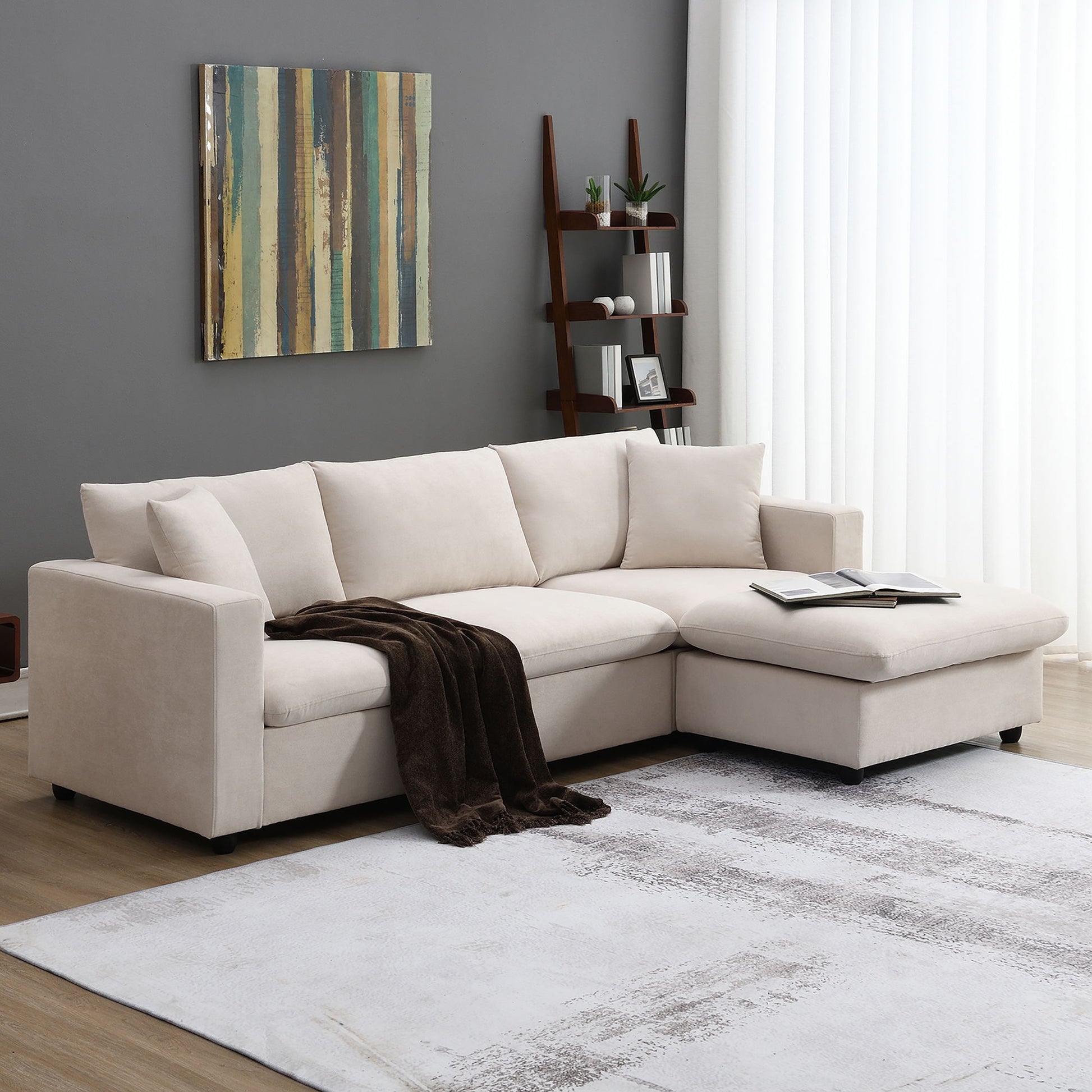 Modern Sectional Sofa, L-Shaped Couch Set With 2 Free Pillows, 4-Seat Polyester Fabric Couch Set With Convertible Ottoman For Living Room, Apartment, Office - Beige