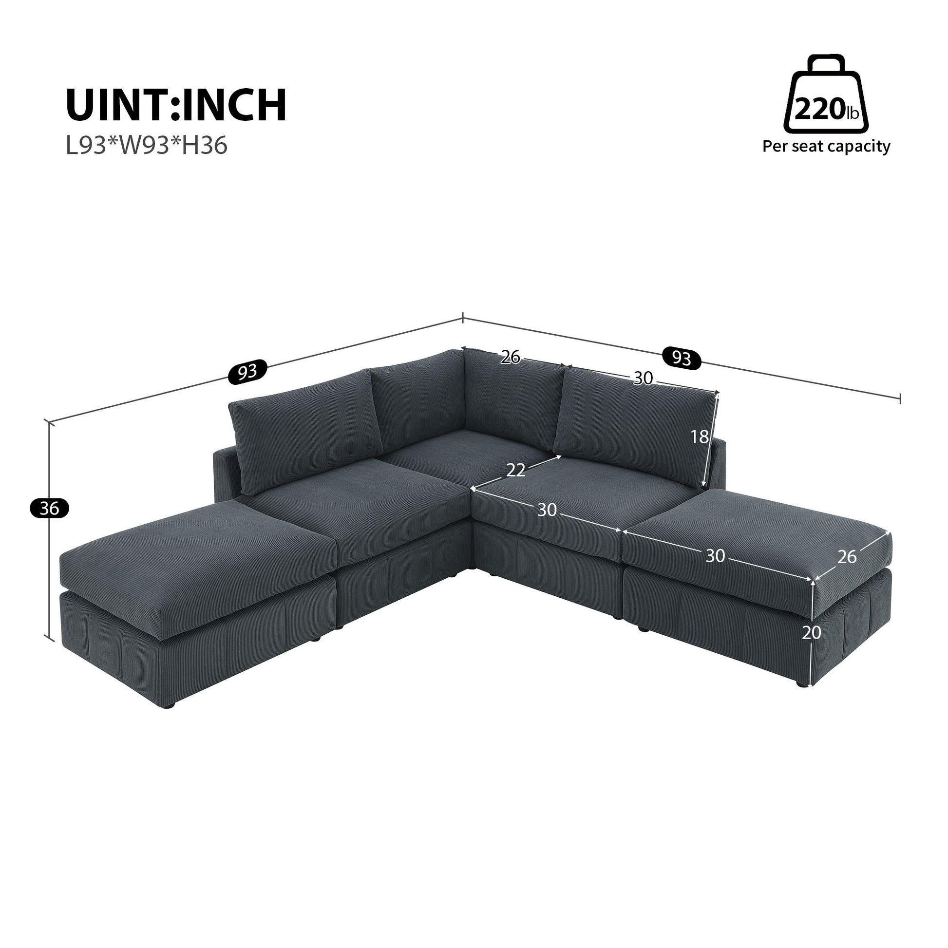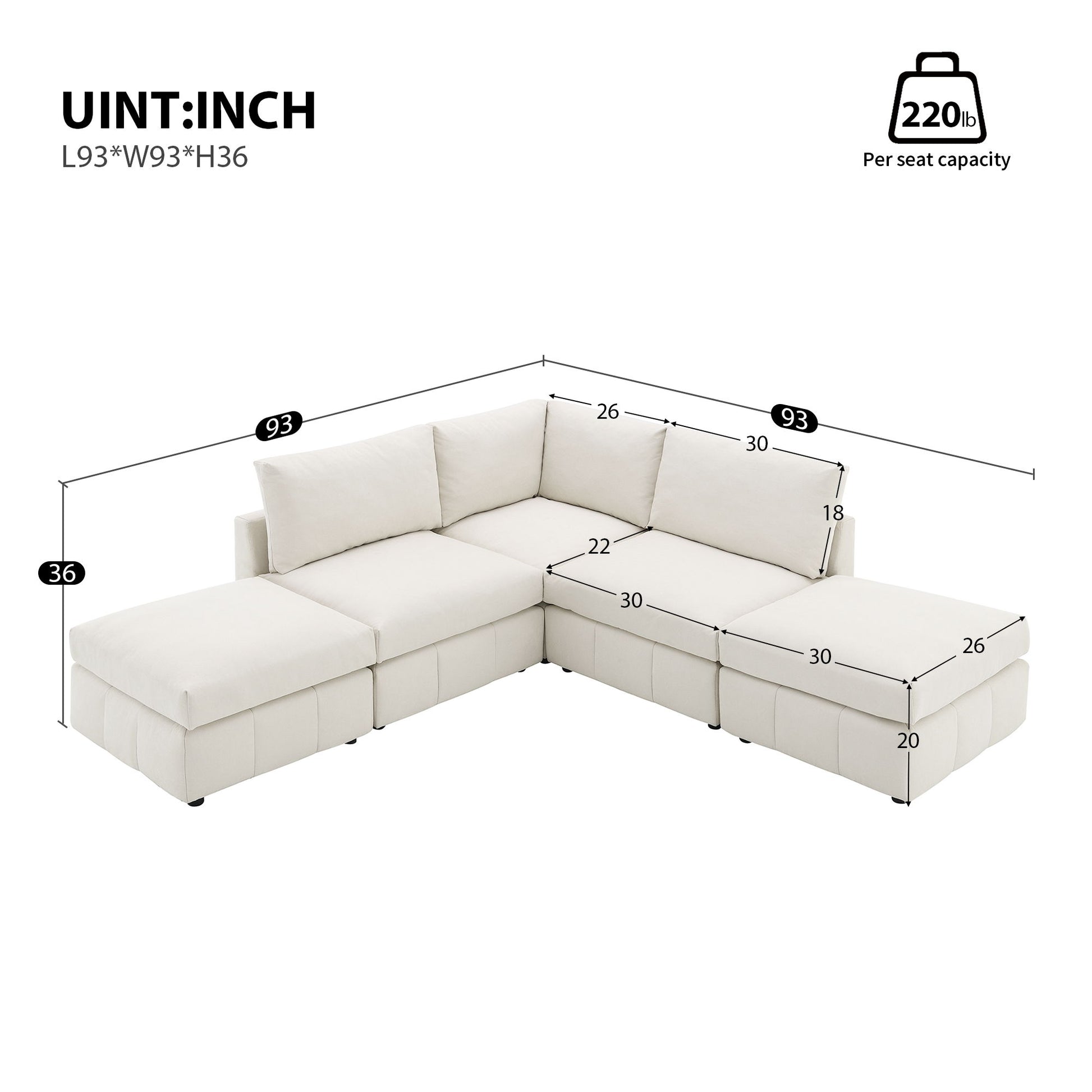 93.0"W x 93.0"D x 36.0"H - 178.82 lb