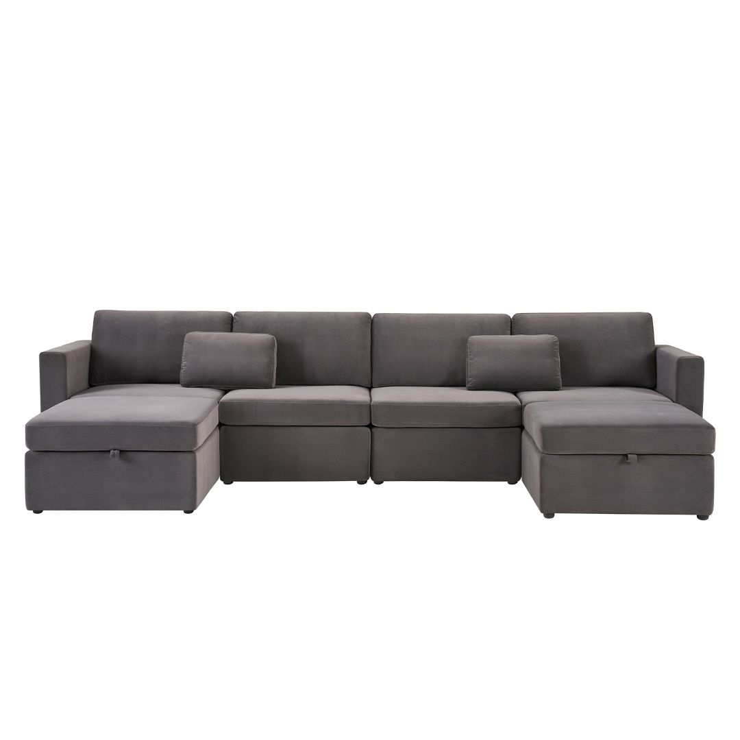 Modern Velvet Modular Sectional Sofa, U Shape Convertible Sofa Set With Pillows, Oversized Sectional Couches With Storage Ottomans For Living Room, Loft, Apartment, Office 6 Seats - Dark Gray