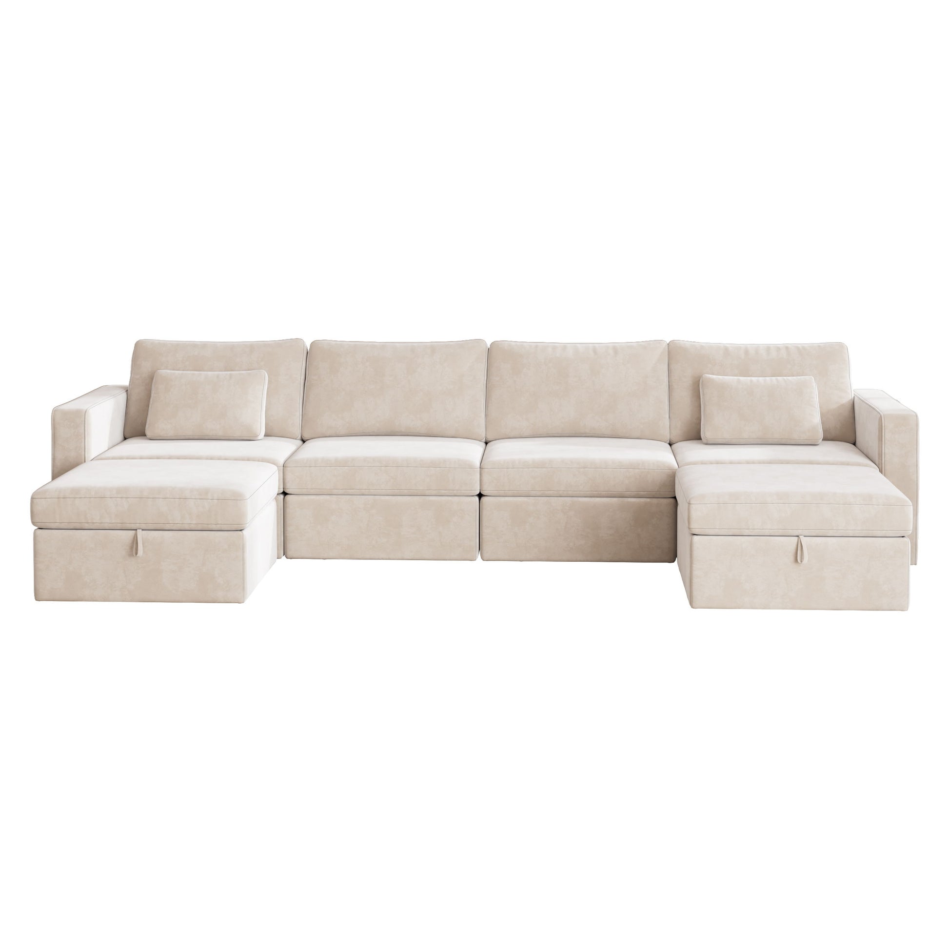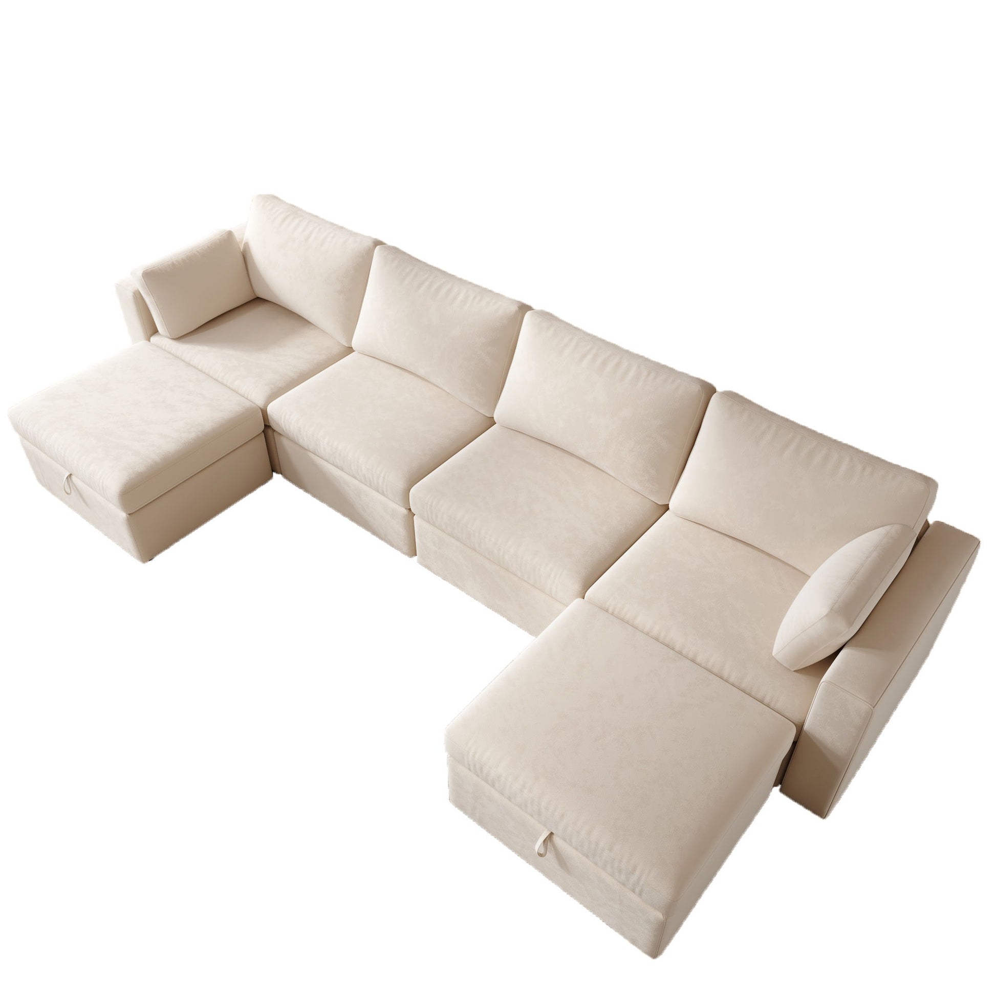 Modern Velvet Modular Sectional Sofa, U Shape Convertible Sofa Set With Pillows, Oversized Sectional Couches With Storage Ottomans For Living Room, Loft, Apartment, Office 6 Seats - Beige