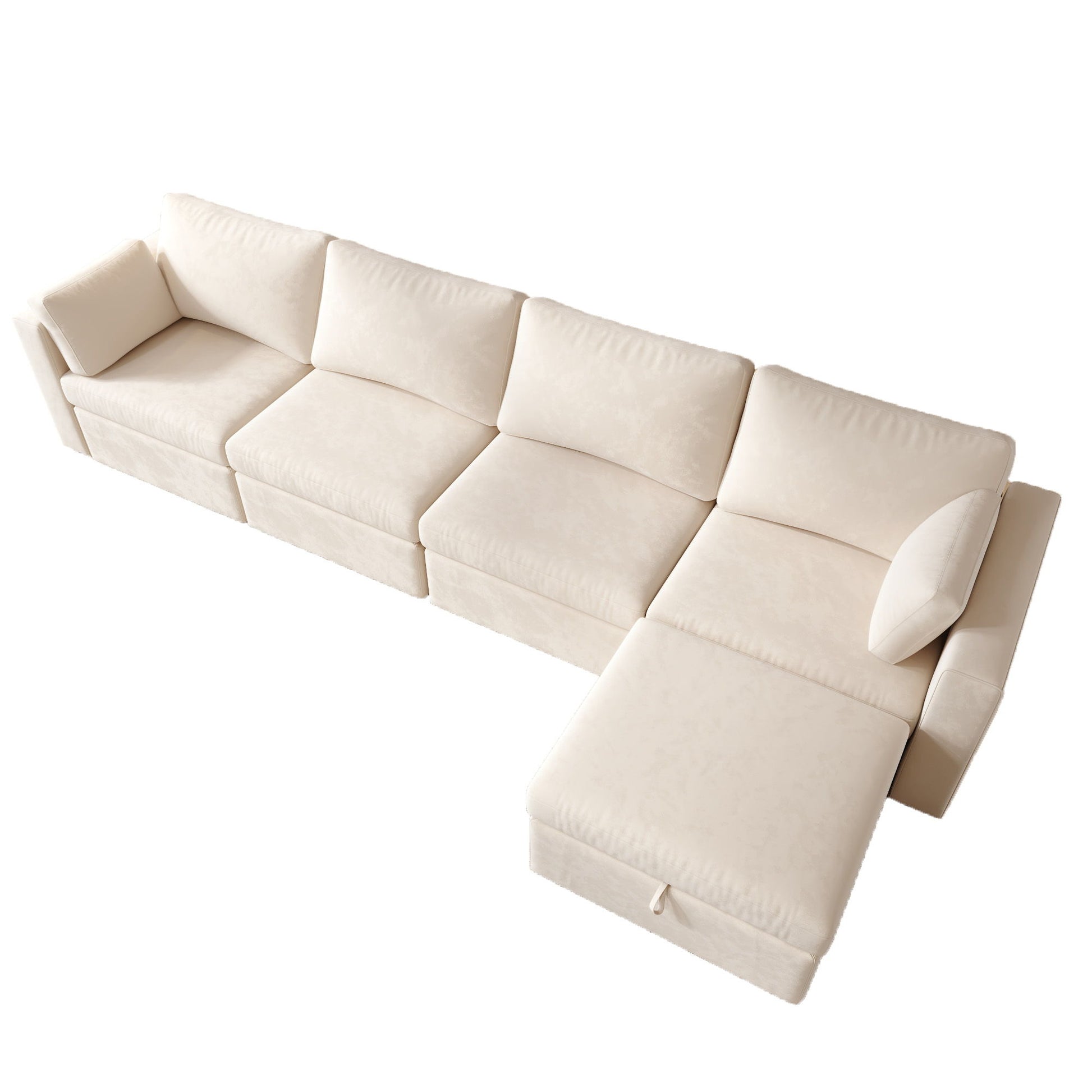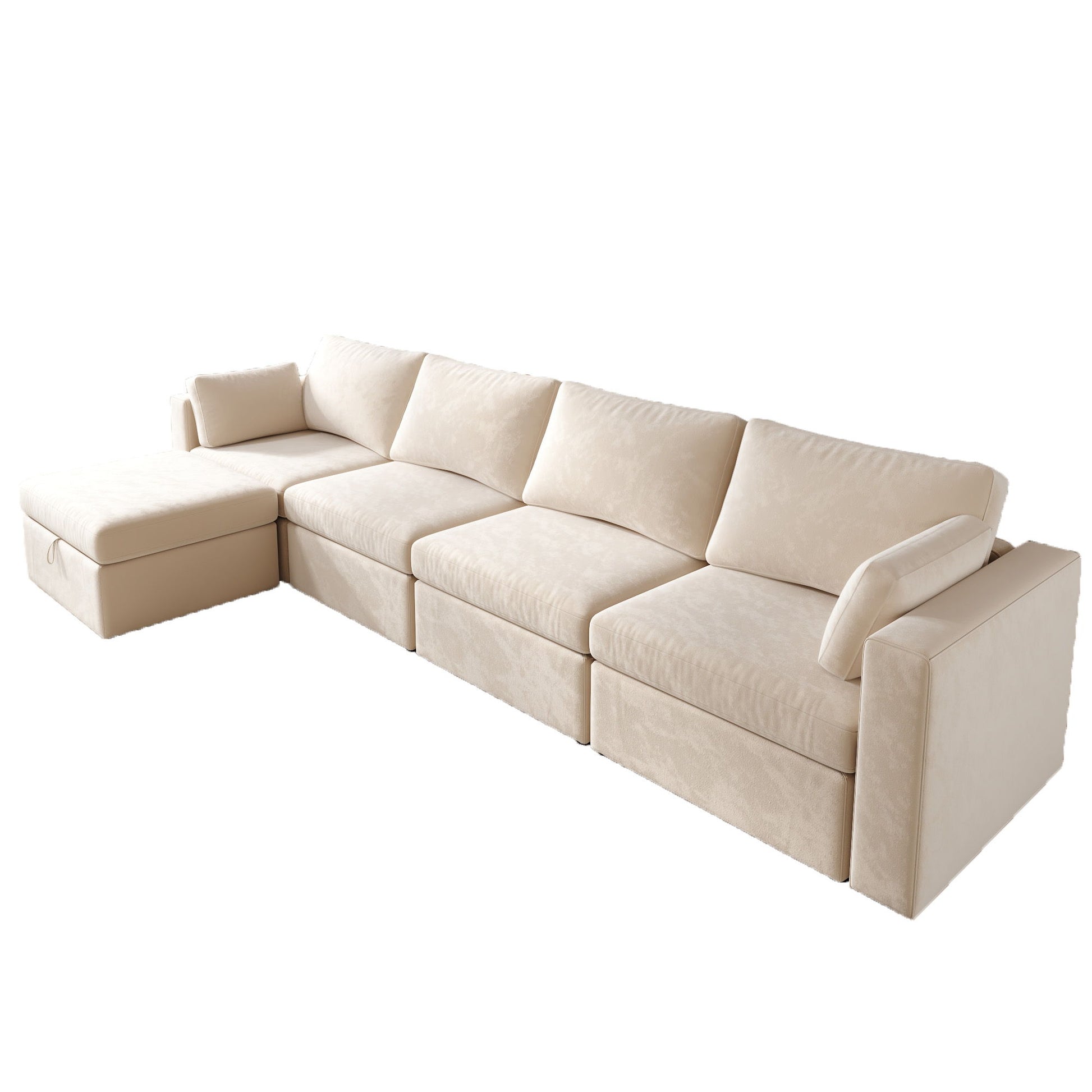 Modern Velvet L-Shape Sectional Sofa, Oversized Upholstery Sectional Sofa, Chaise Couch With Storage Ottomans For Living Room / Loft / Apartment / Office 5 Seats - Beige