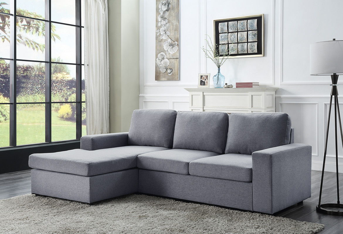 Experience comfort and versatility with our reversible sectional sofa chaise! Crafted from solid wood and premium fabrics, this sectional invites you and your guests to unwind in style. Its clean, European-inspired design exudes timeless elegance, offering ample space and an adaptable layout. With a reversible chaise feature, you can effortlessly position it on the left or right side, complemented by foam-filled seats supported by pocket coil springs for ultimate relaxation.