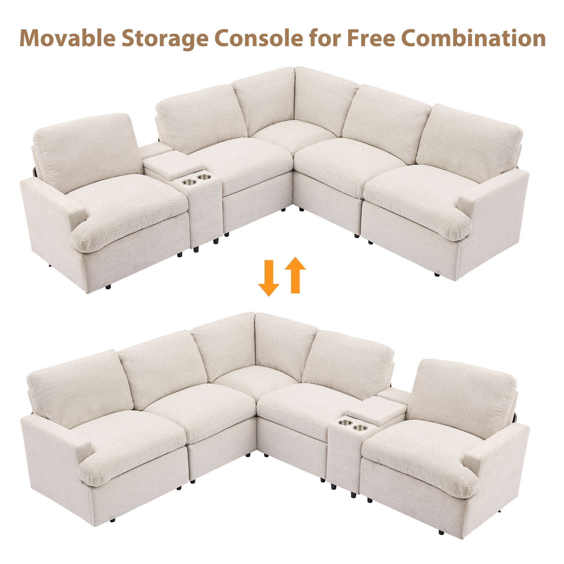 Power Recliner Corner Sofa Home Theater Reclining Sofa Sectional Couches With Storage Box, Cup Holders, USB Ports And Power Socket For Living Room - Beige