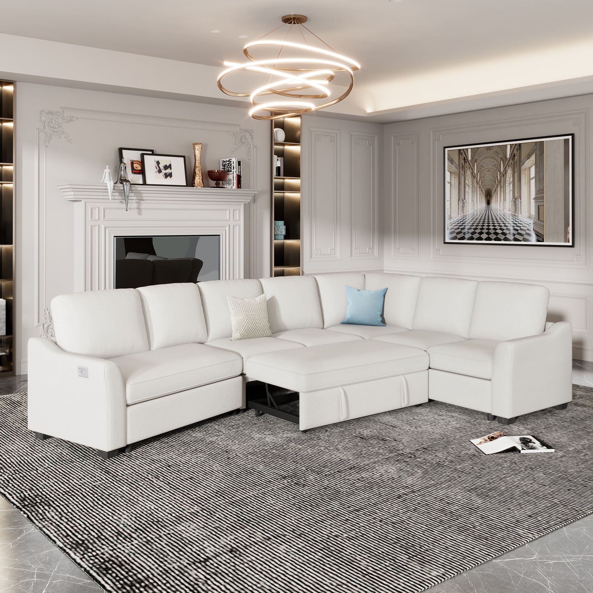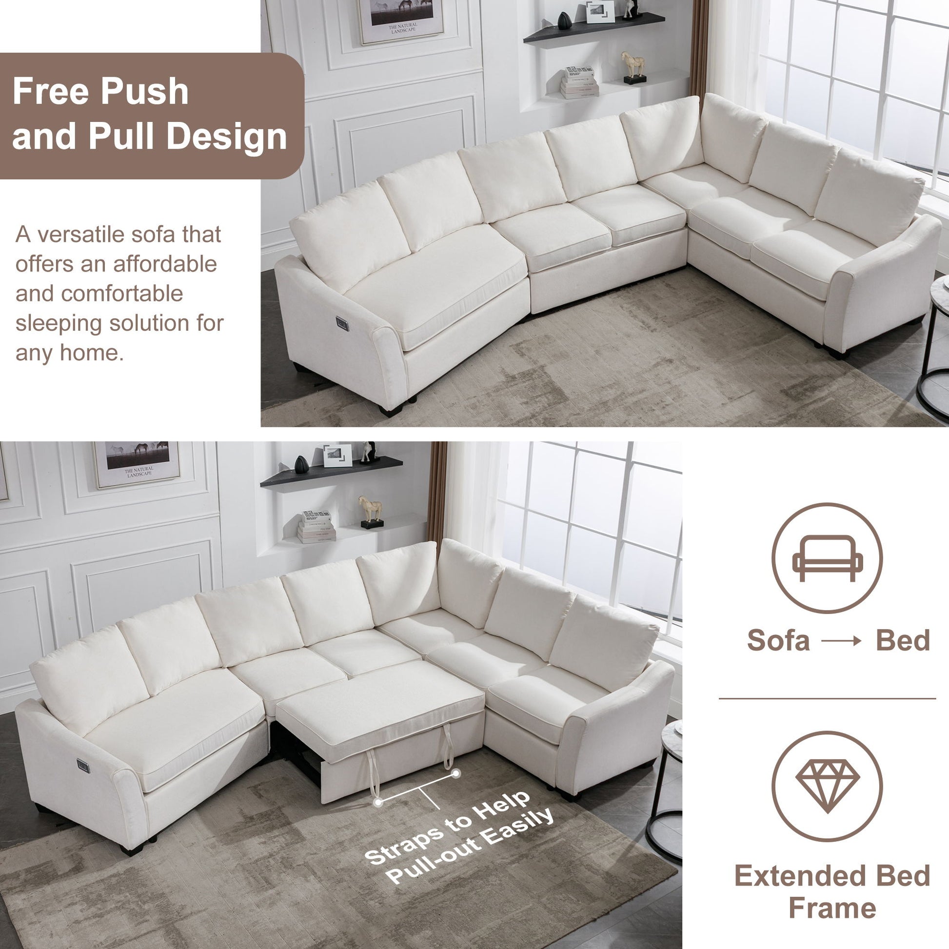 Sectional Sleeper Sofa With Pull-Out Bed Modern L-Shape Couch Bed With USB Charging Port For Living Room, Bedroom - Beige