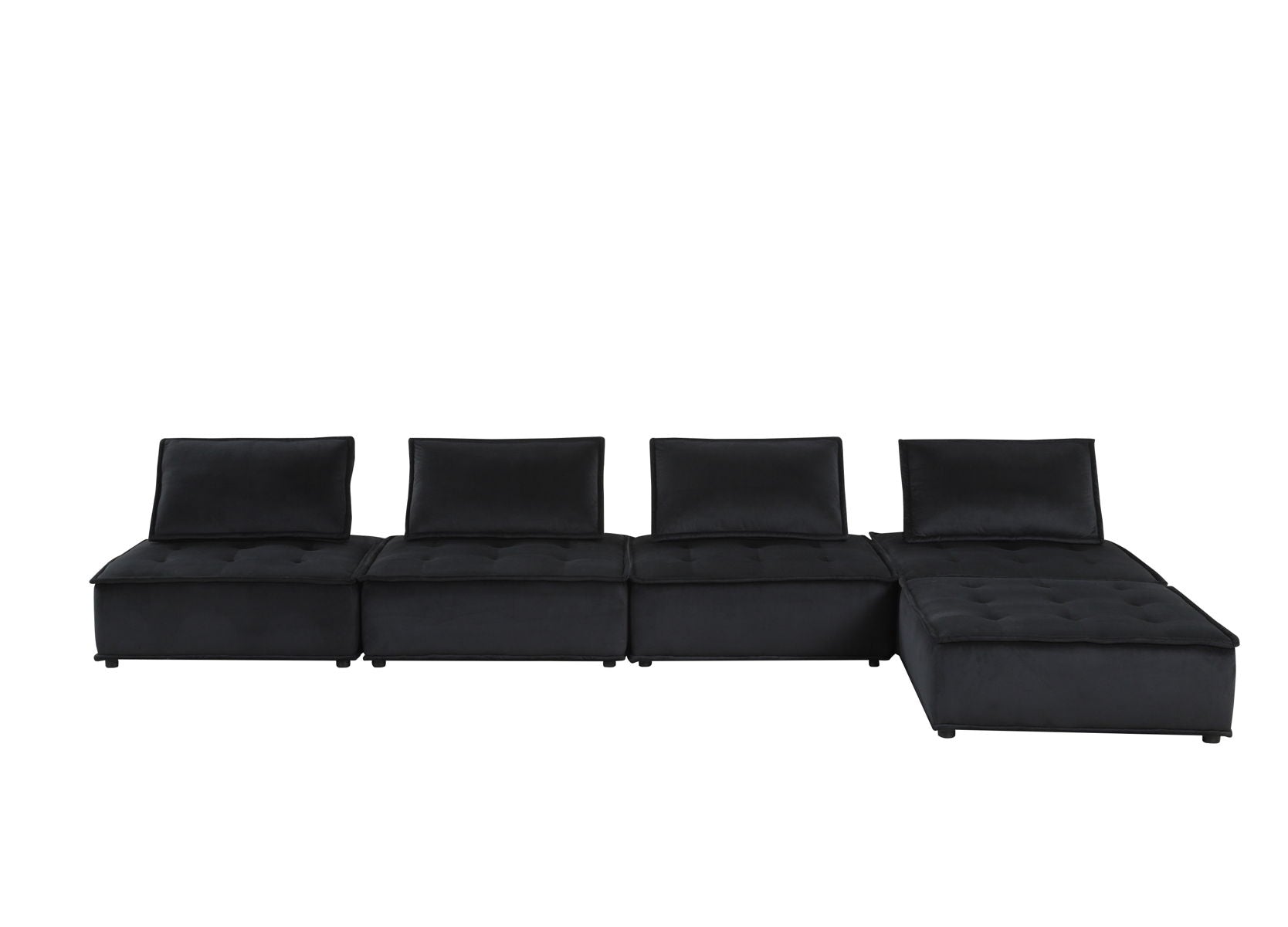 Transform your space with our sectional sofa set, a blend of comfort and style. Sink into the soft velvet upholstery and enjoy the plush cushion back support, providing utmost relaxation after a long day. Its modern aesthetic and tufted seating elevate the decor in any living area, whether it's your living room, bedroom, or home office. Each seat unit, equipped with a back cushion, easily converts into an ottoman, offering versatility. With foam-filled seats supported by pocket coil springs, this modular sofa lets you configure a sectional that suits your desired layout perfectly.