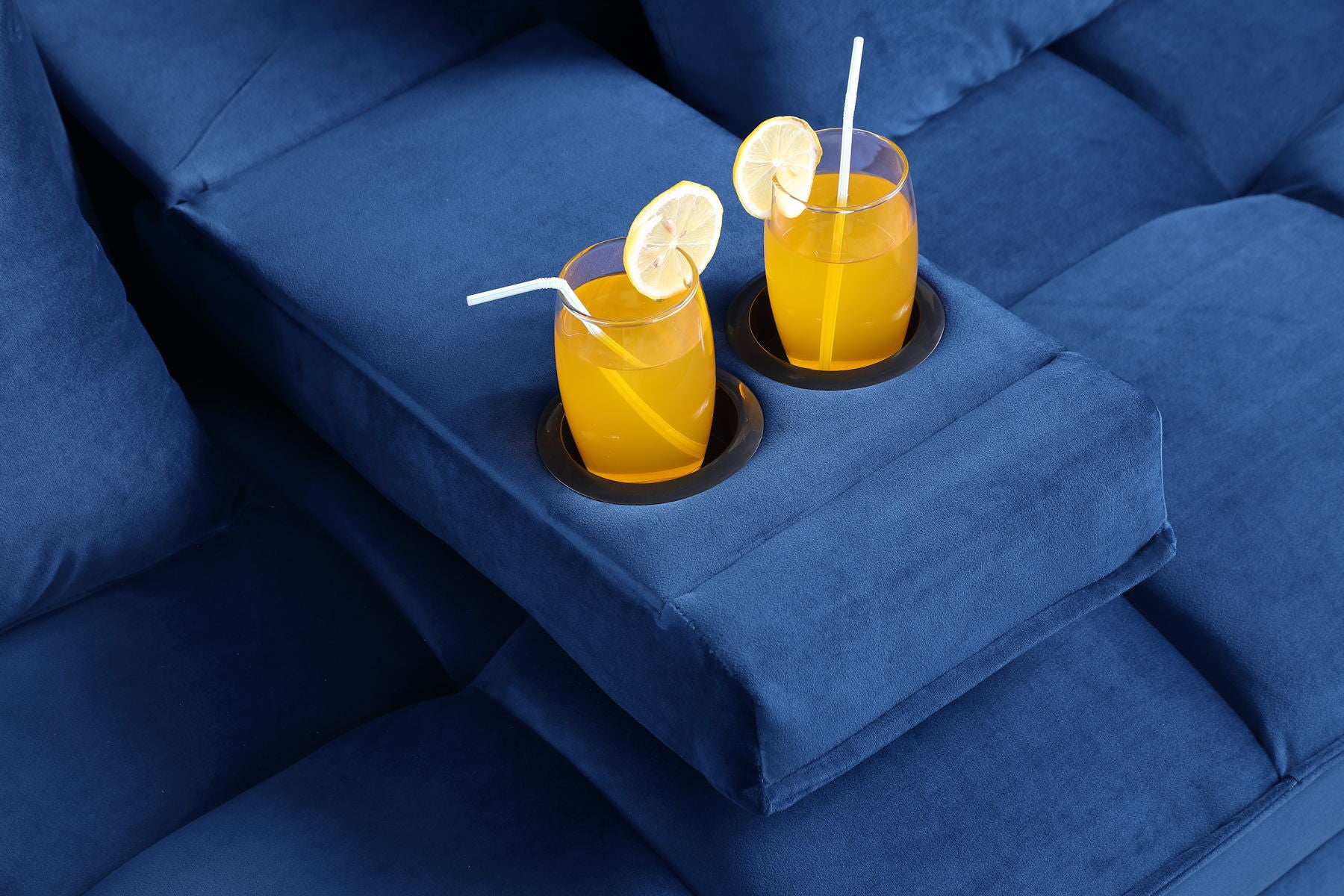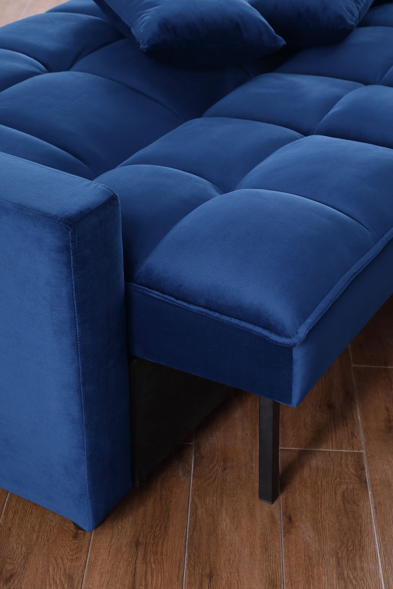 66.25'' Velvet Pull Out Sofa Sectional - Blue