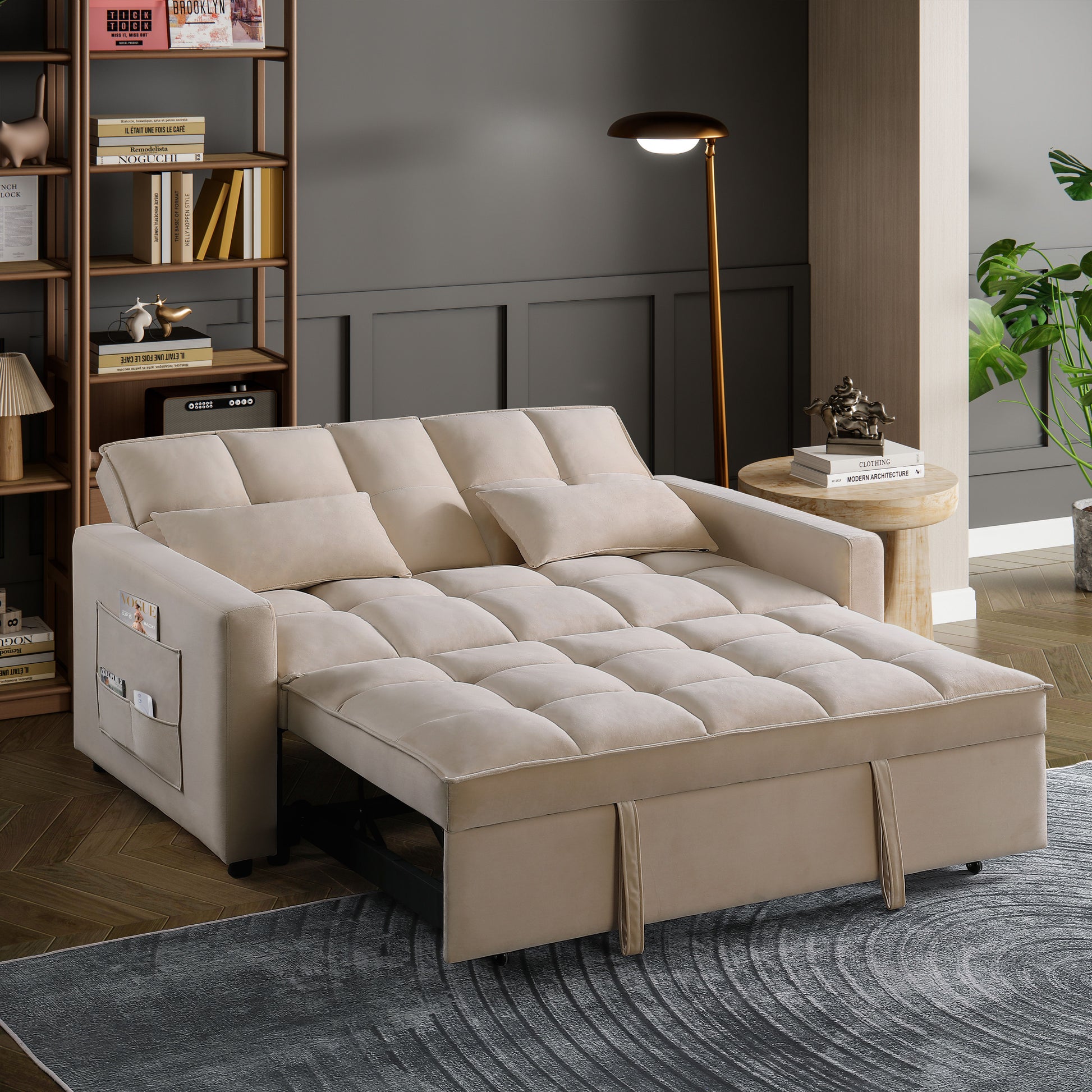 66.25'' Velvet Pull Out Sofa Sectional - Beige