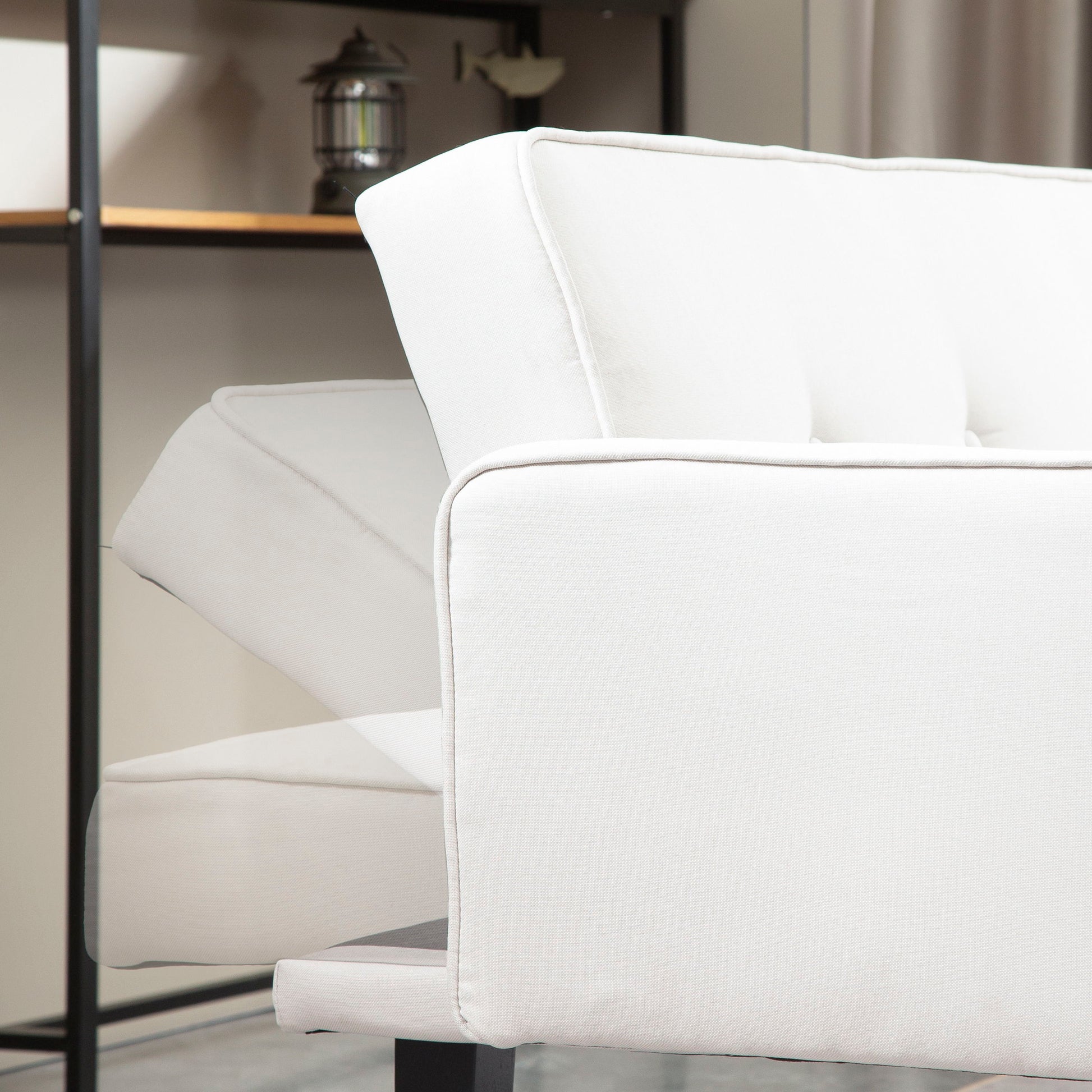 Futon Sofa Bed Convertible Couch Bed With Armrests Modern Living Room Linen Sofa Bed, Folding Recliner Futon Couch Sleeper Set With Solid Wood Legs - Beige