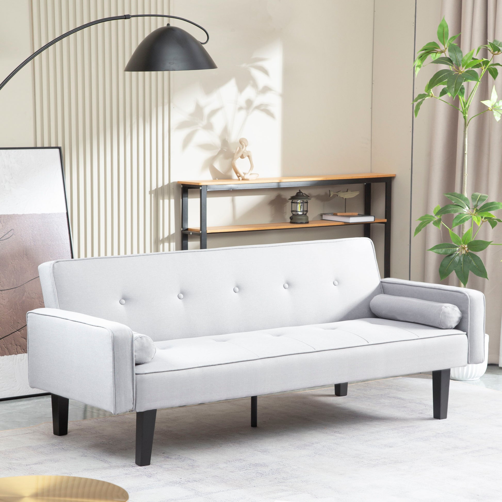 Futon Sofa Bed Convertible Couch Bed With Armrests Modern Living Room Linen Sofa Bed, Folding Recliner Futon Couch Sleeper Set With Solid Wood Legs - Light Gray