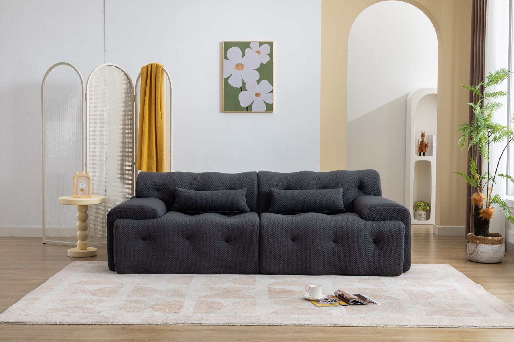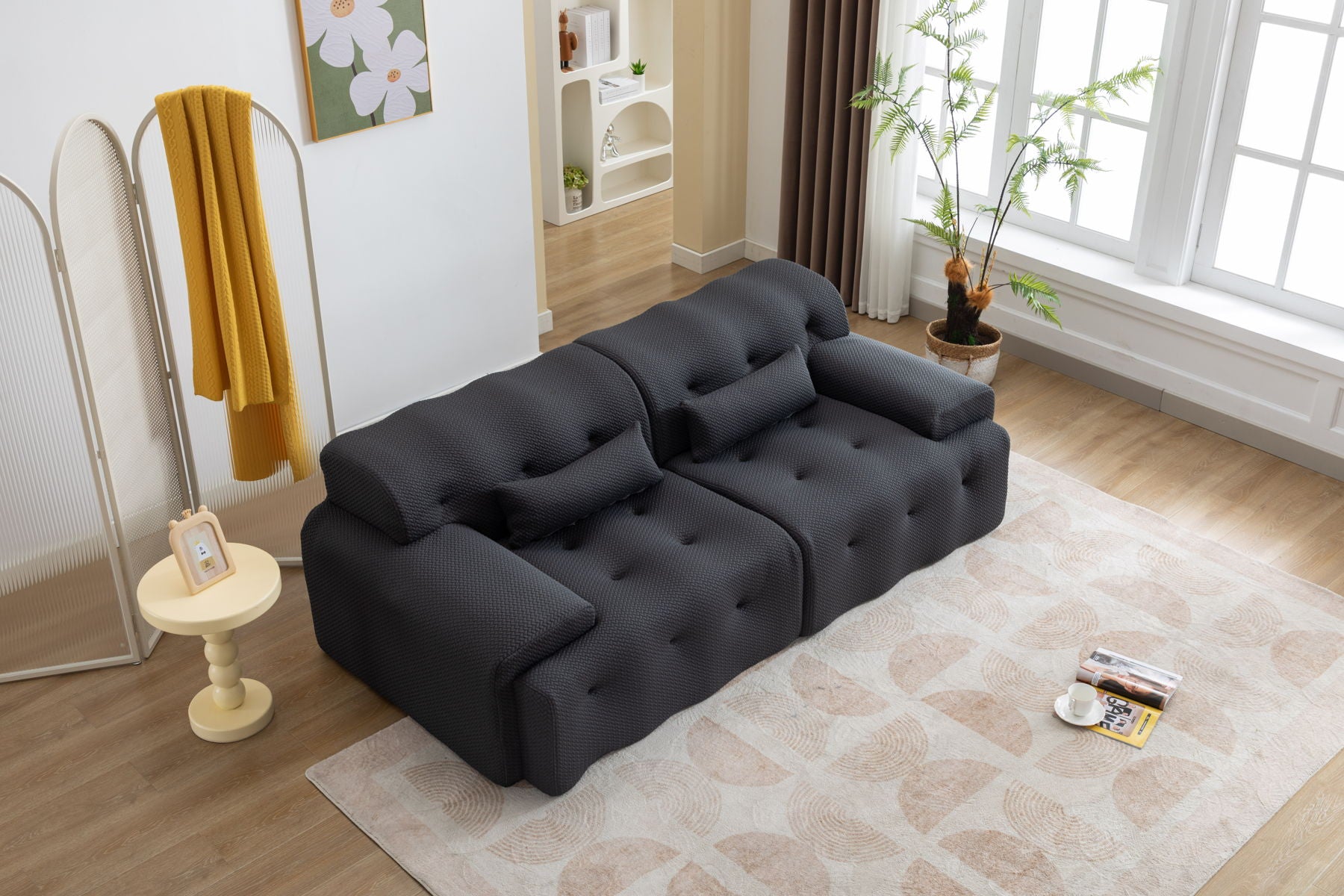 Multi-functional one seater sofa couch: Suitable for office, bedroom, and apartment spaces. Safe and comfortable design: Made of pure foam and spring without hard parts, ideal for families with babies. High-quality construction: Features high-density foam to prevent sofa collapse. No-hassle assembly: Ready to use with no assembly required, simply unpack and allow 72 hours for optimal fluffiness.