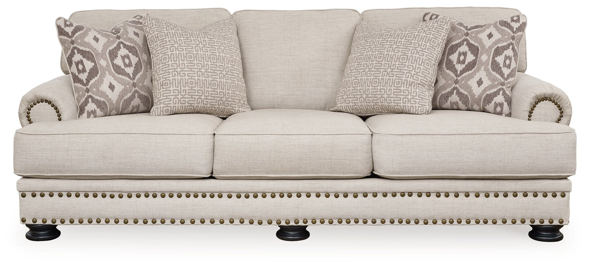 Talk about a looker. This sofa has folks head over heels in love. More than easy on the eyes—with its nailhead trim accents, linen-look upholstery and newfangled decorative turned legs—it’s also got quality and substance. There's room enough for cuddling up with someone special or sprawling out solo.