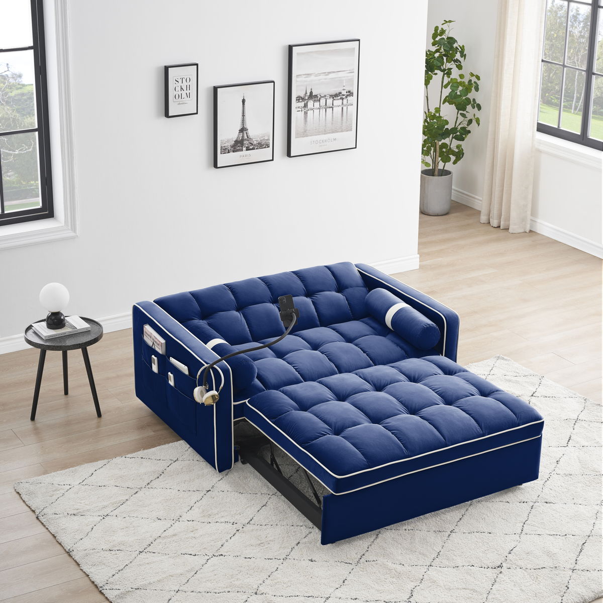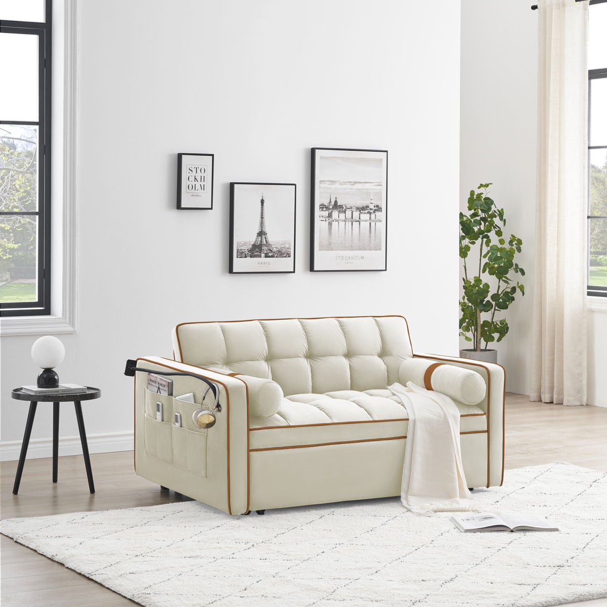 Modern Convertible Sleeper Sofa Couch With Pull Out Bed With Pillows & Side Pockets For Small Space, Living Room