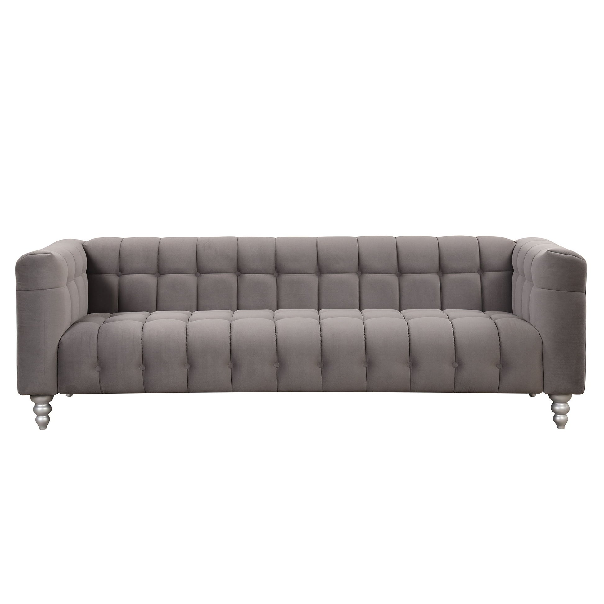Modern Sofa Dutch Fluff Upholstered Sofa & Solid Wood Legs, Buttoned Tufted Backrest - Gray