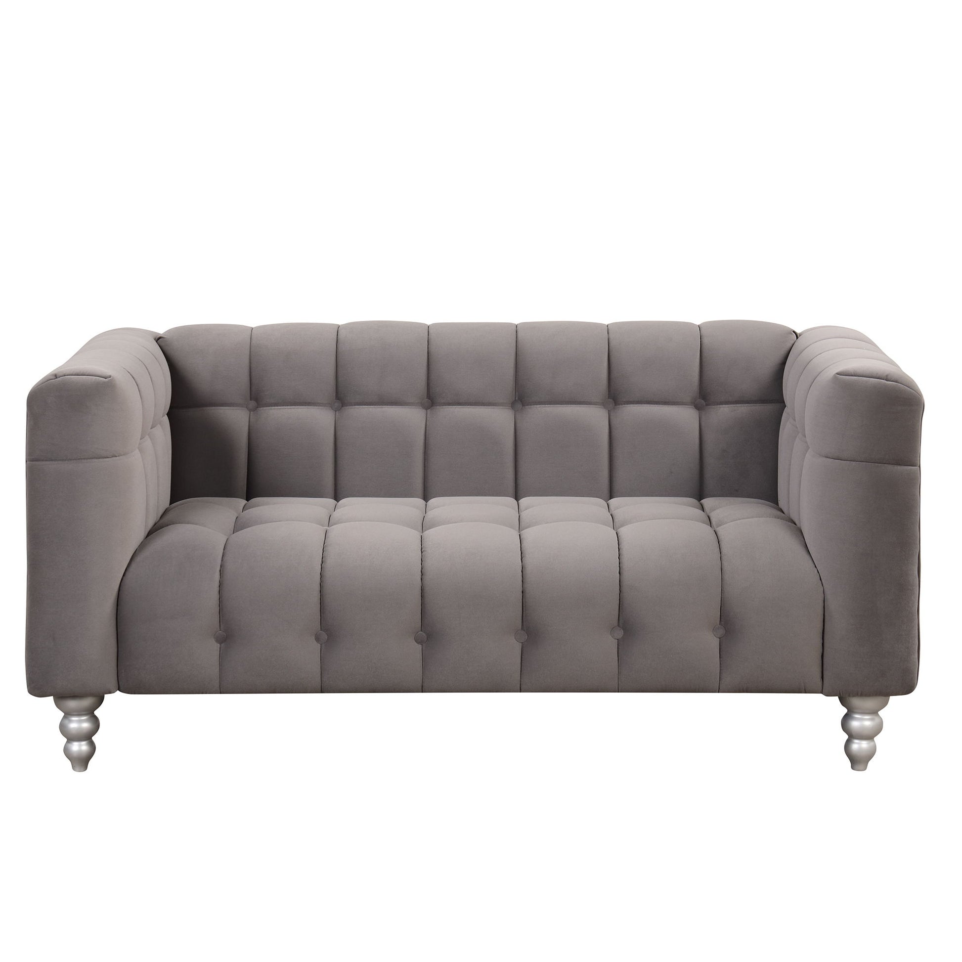 Modern Sofa Dutch Fluff Upholstered Sofa With Wood Legs, Buttoned Tufted Backrest - Gray