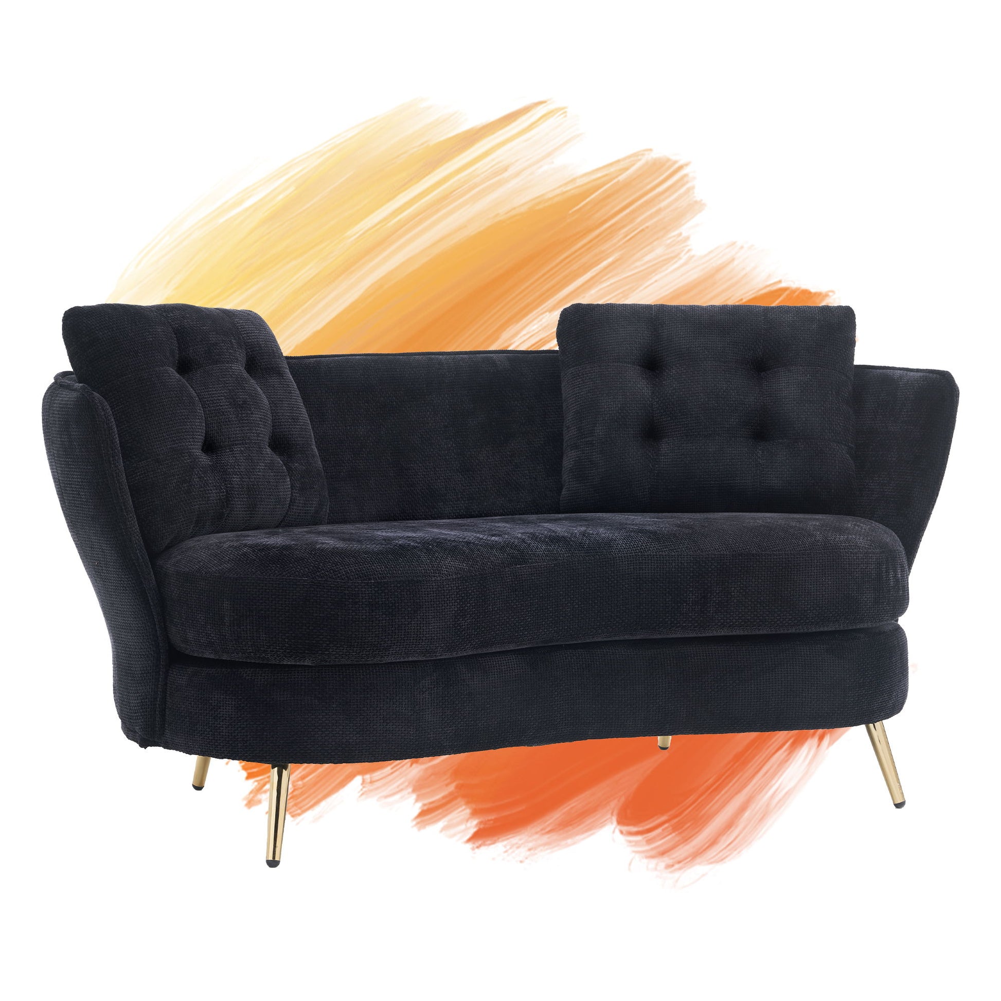 Polyester Fiber Loveseat Sofa Chair Upholstered Couch With Golden Metal Legs Club Two-Seat Sofa For Living Reading Room Bedroom Apartment Small Space Dorm - Black