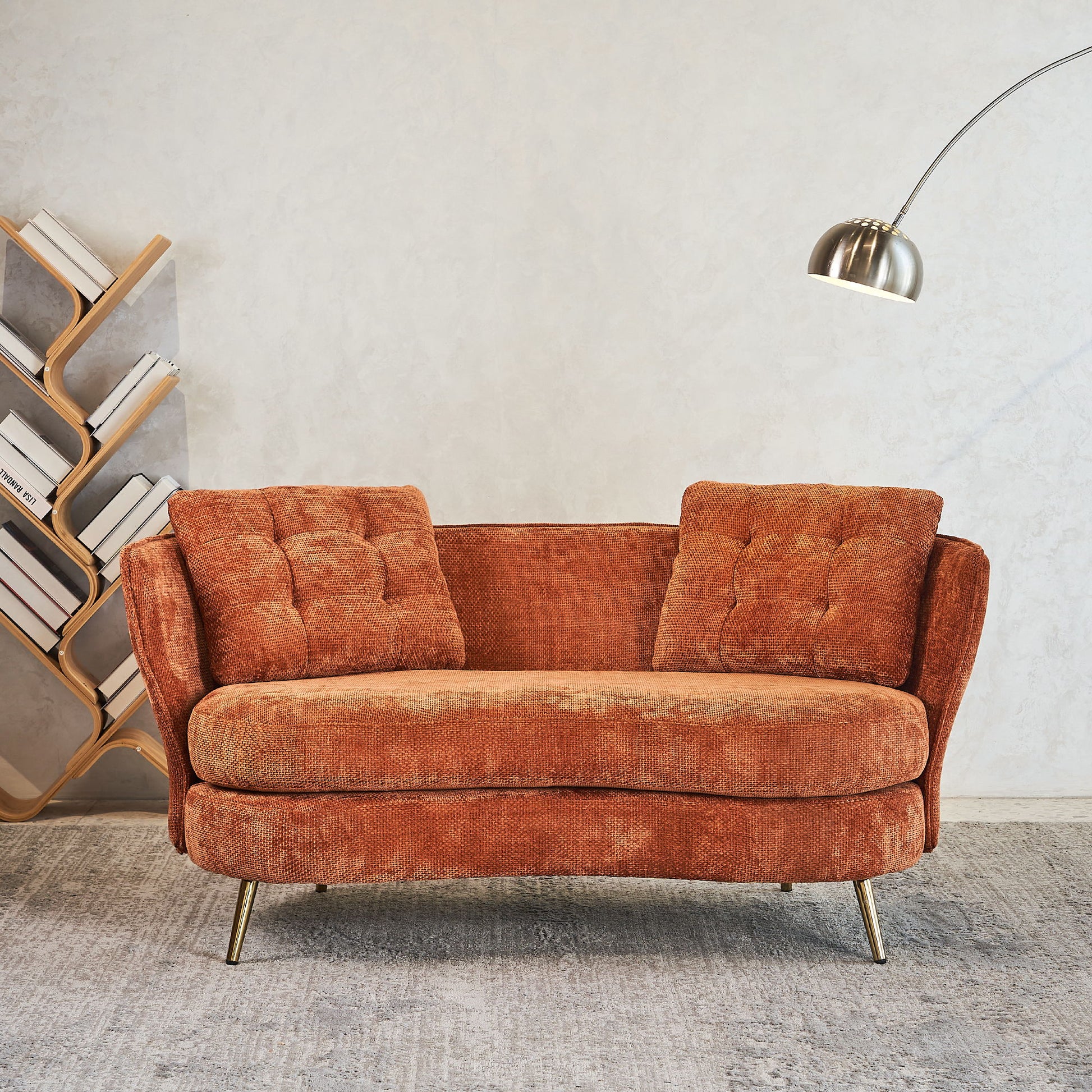 Polyester Fiber Loveseat Sofa Chair Upholstered Couch With Golden Metal Legs Club Two-Seat Sofa For Living Reading Room Bedroom Apartment Small Space Dorm - Orange