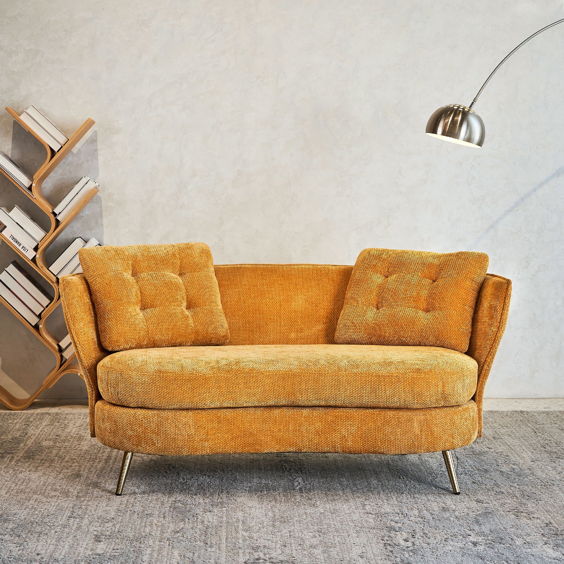 Polyester Fiber Loveseat Sofa Upholstered Couch With Golden Metal Legs Club Two-Seat Sofa For Living Reading Room Bedroom Apartment Small Space Dorm - Yellow