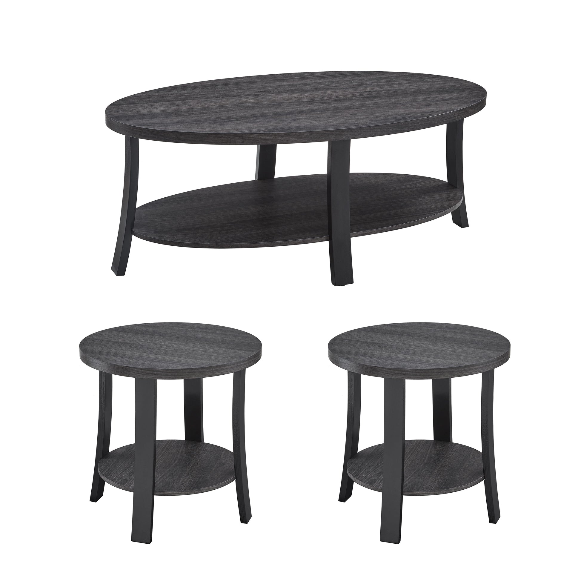 Anze - 3 Piece Coffee Table Set Contemporary Oval Wood Shelf - Charcoal