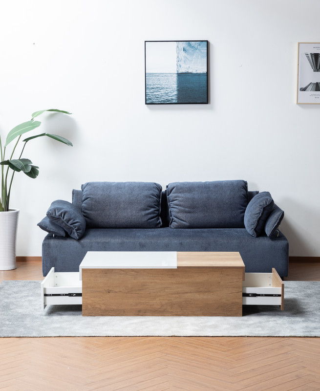 • The Arlo brown wood and white finish coffee table features multiple storage spaces. The two drawers and two hidden compartments underneath the sliding tabletop can store all your media essentials. Without compromises on looks, one end of the tabletop slides outwards to reveal the hidden storage space thats divided into two compartments. Drawers are simplified with their handleless structure. The clean-cut and low profile is perfect for the minimalist design of any living space.