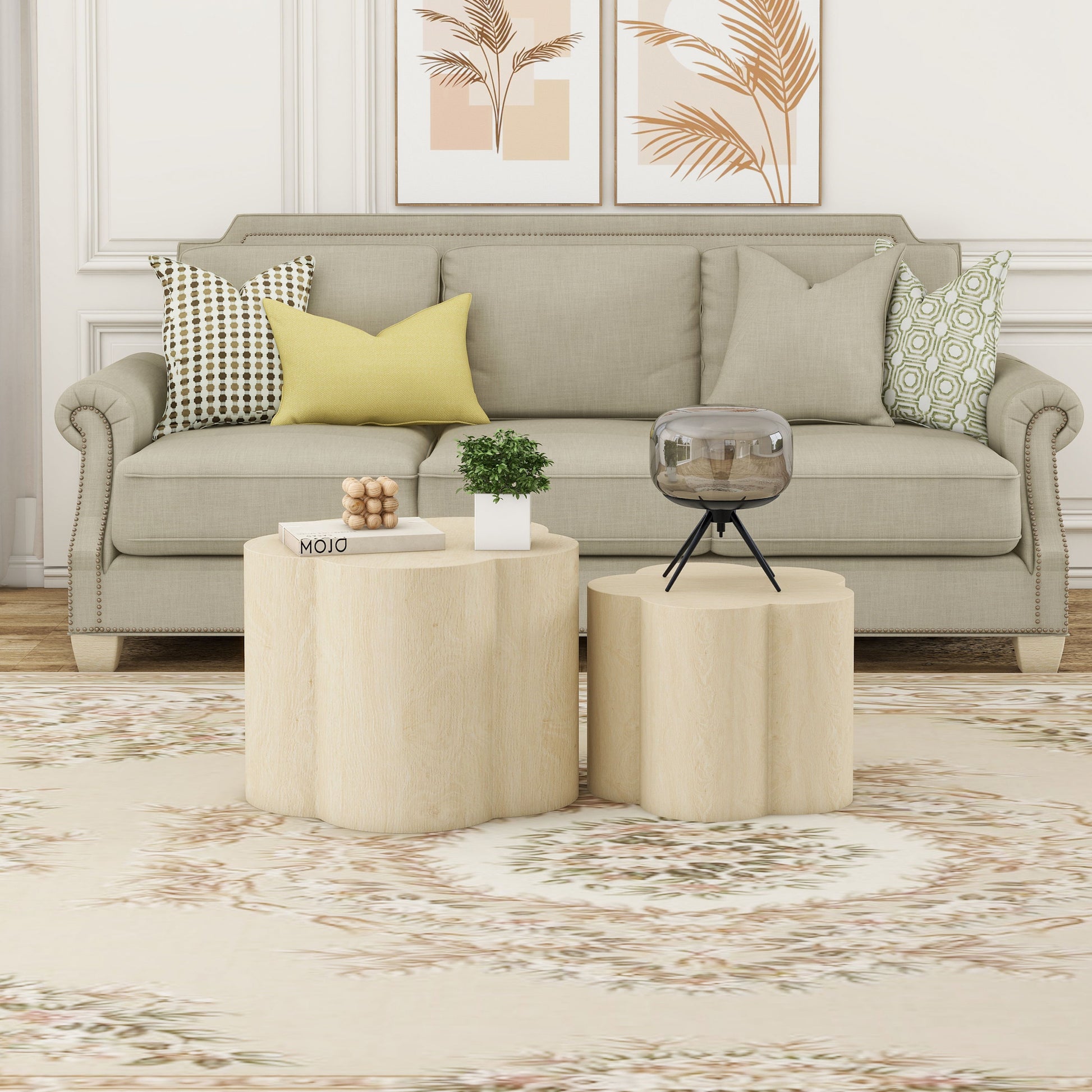 Coffee Table (Set of 2) Cloud Coffee Table, Nesting Coffee Table, End Table, Sidetable For Living Room, Bedroom, Office, Balcony - Natural