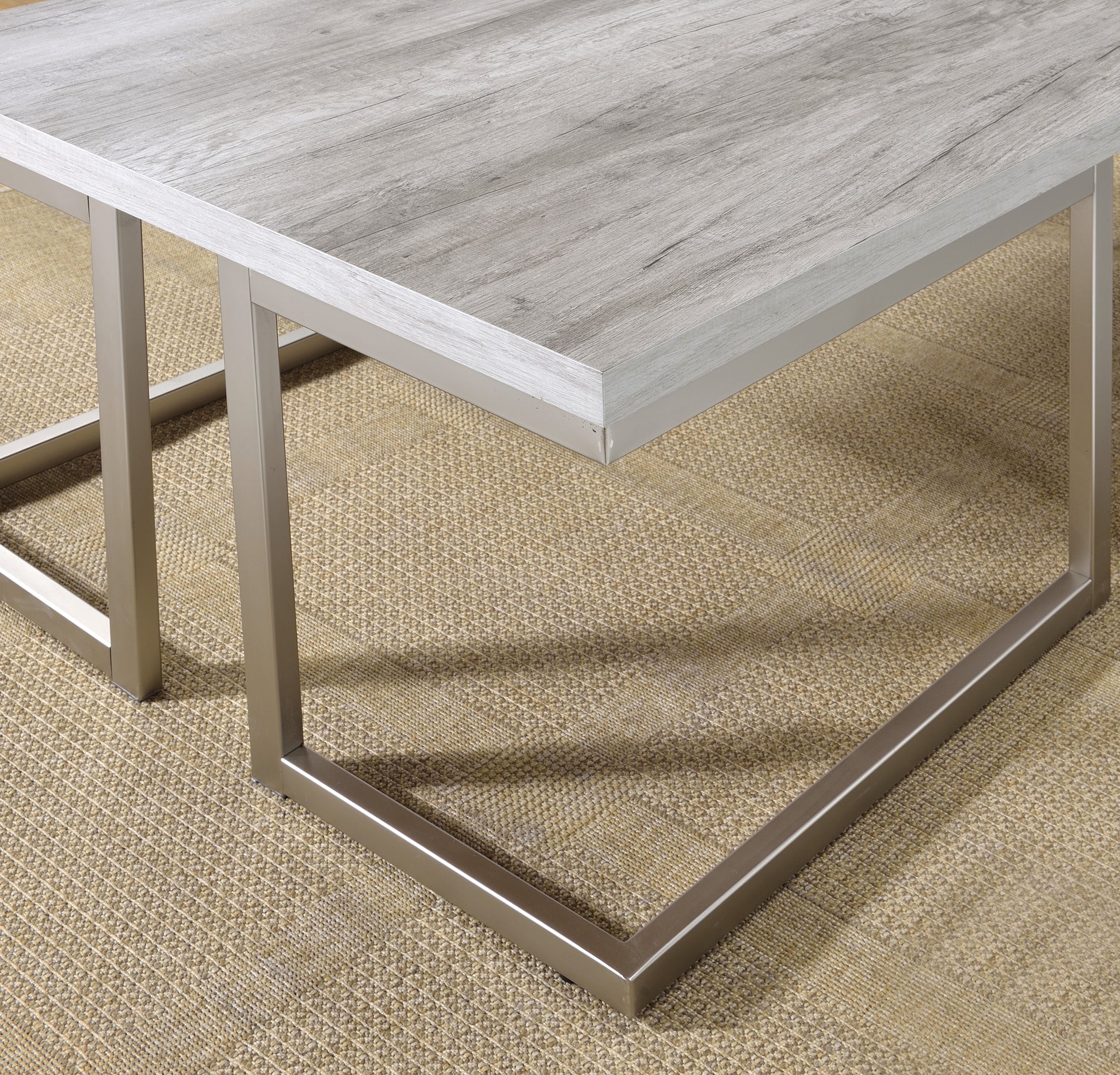 Refined rustic style comes to your living room with David occasional tables from Steve SIlver Company. The contemporary styled matte pewter colored base features an interesting geometric shaped base that combines with the Silvershield® driftwood colored top to create a table collection comfortable in today's neutral environments. Choose from cocktail or end table.