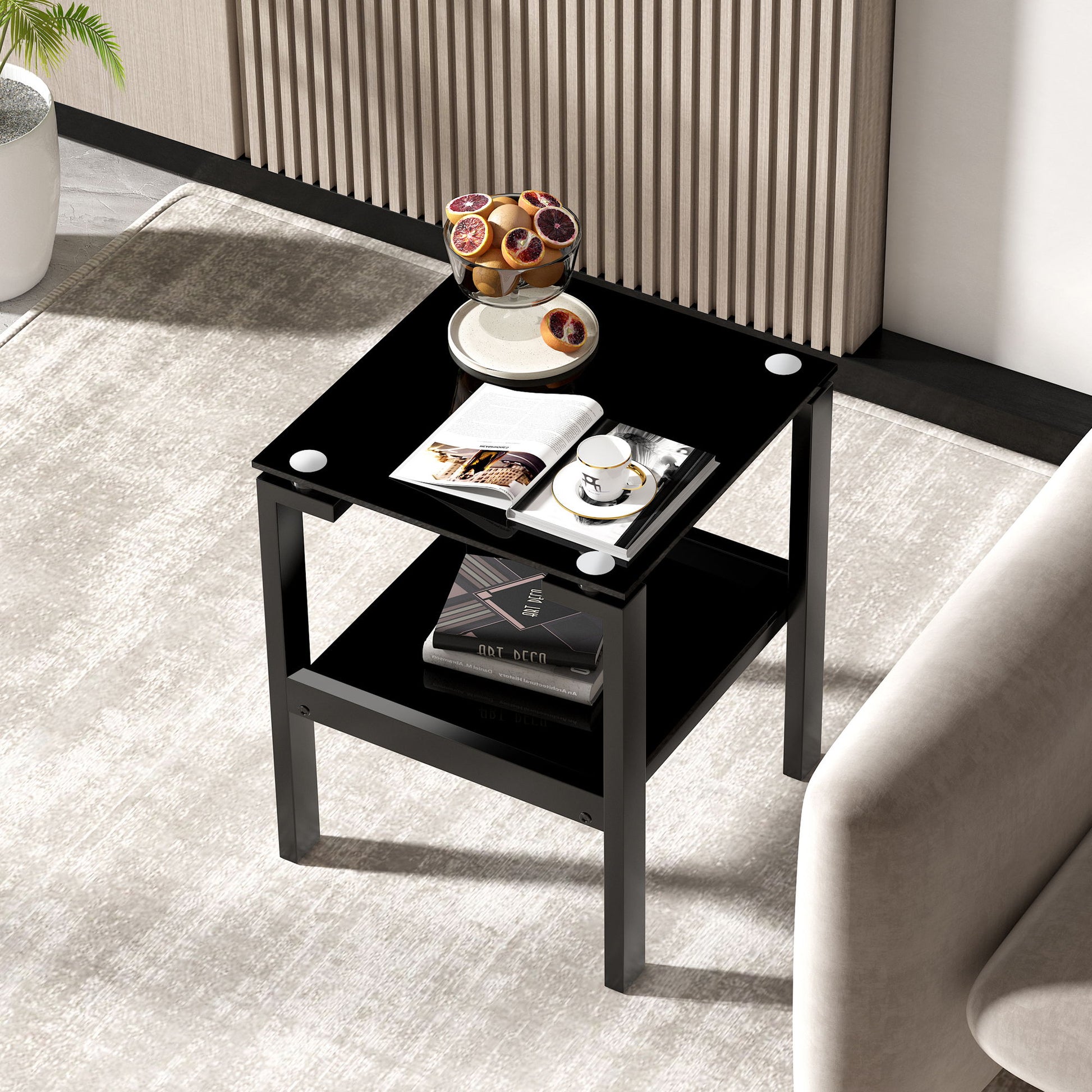 - Modern Design: Sleek black glass side & end table with a 2-tier space-saving design.
