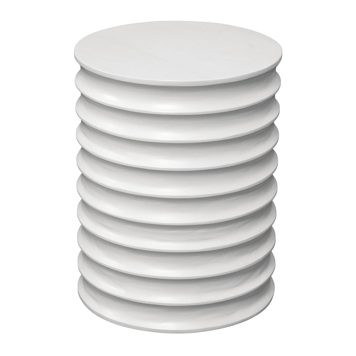 The Griffin Side Table brings a unique and eclectic touch to any space with its wavy design, offering a delightful pop of style. Perfectly sized at 14 inches round and 18 inches high, it's compact enough to fit anywhere while still making a significant impact on the room's aesthetics. Whether serving as a charming side table or a chic bedside companion, Griffin stands out in its elegant white finish.