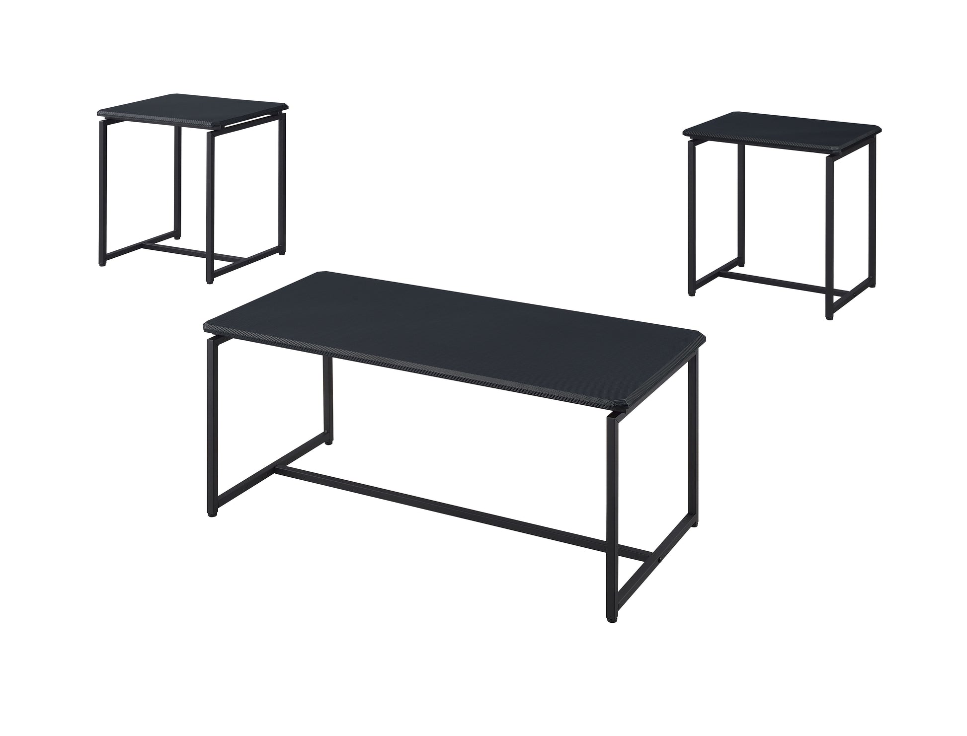 GT - 3 Piece Carbon Fiber Wrap Coffee Table And End Table (Set of 3) - Black
