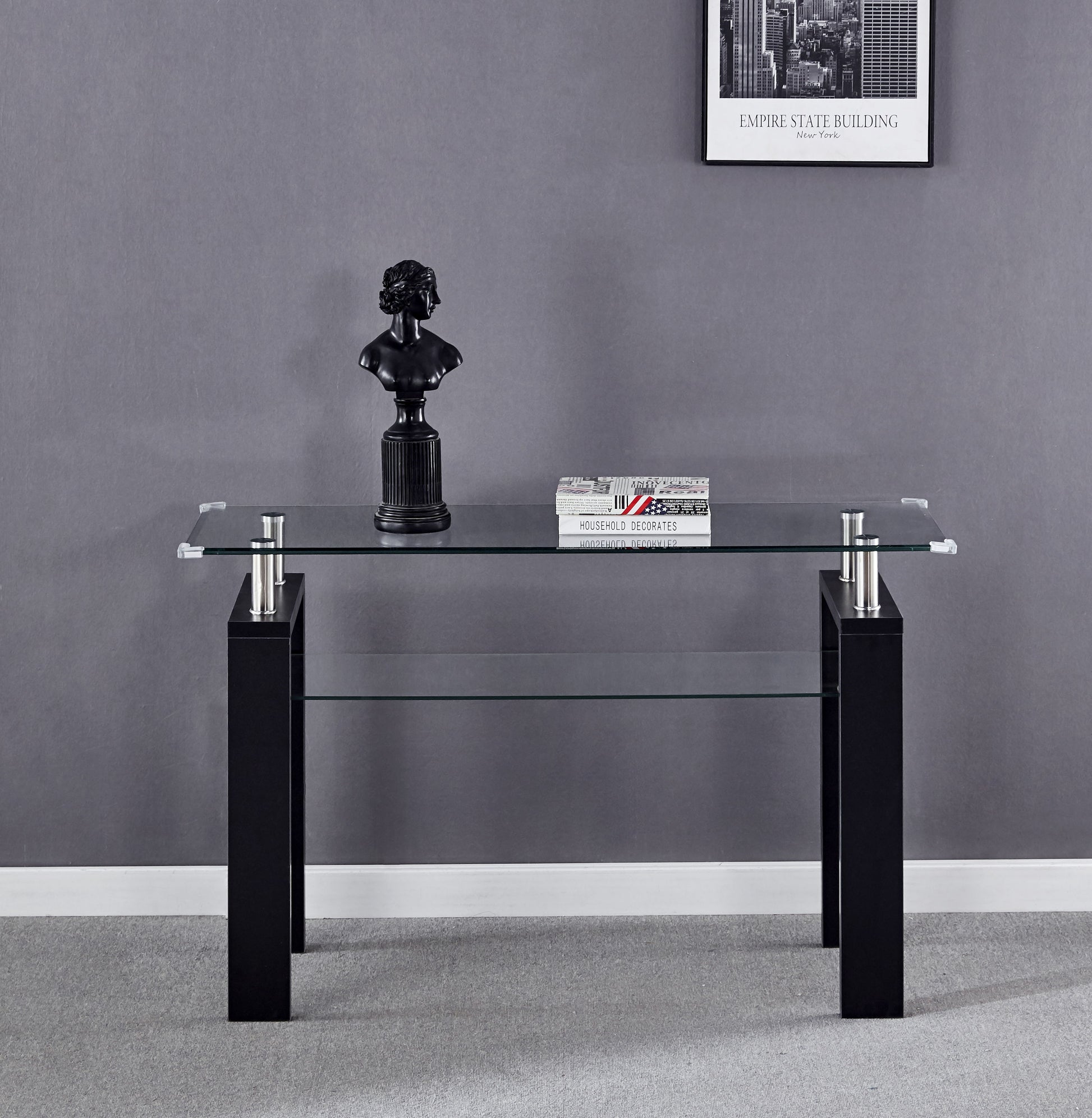 MDF Console Table, Tempered Glass Top, Modern Foyer Area Table - Black
