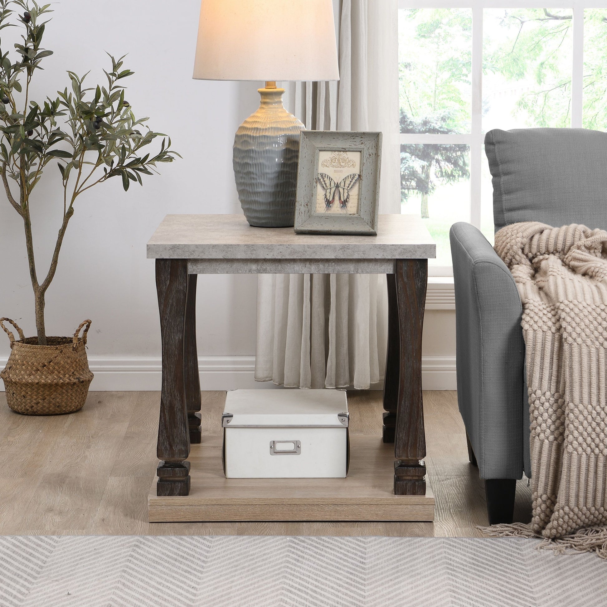 - Elegant Vintage Design: Antique Grey wood grain finish with square baluster legs for a stylish and luxurious vibe.