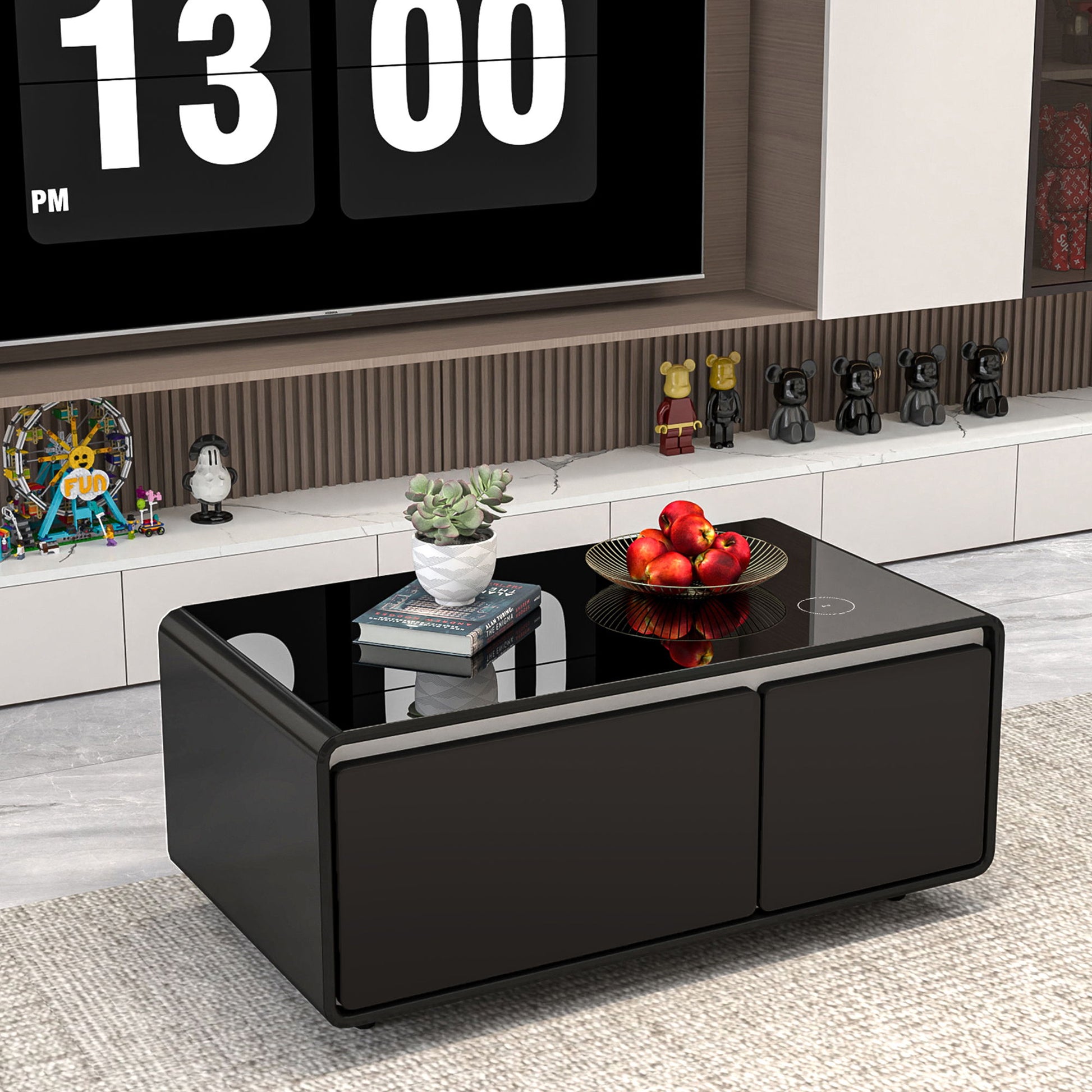 Modern Smart Coffee Table With Built-In Fridge, Wireless Charging, Power Socket, USB Interface, Outlet Protection, Mechanical Temperature Control And Ice Water Interface - Black