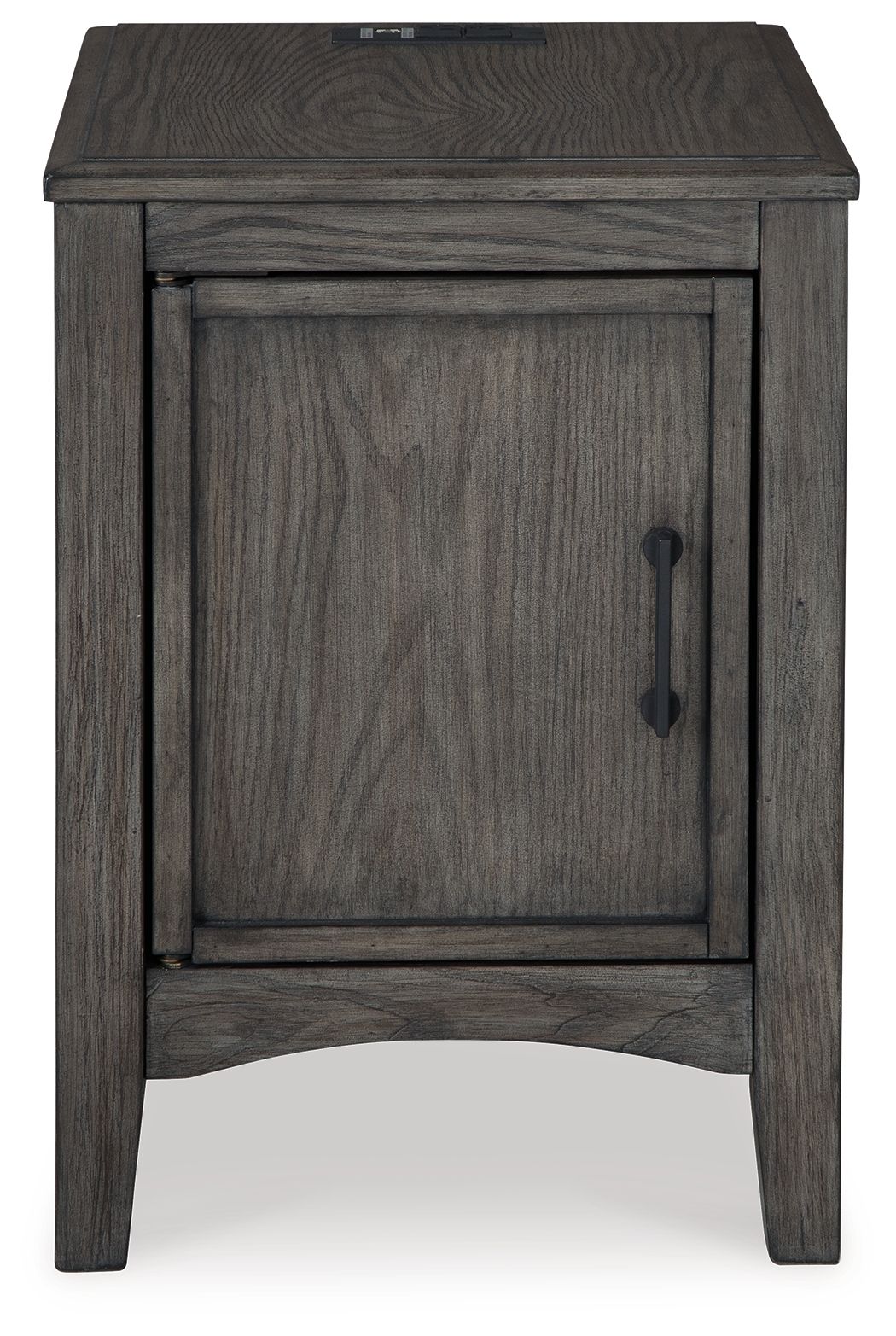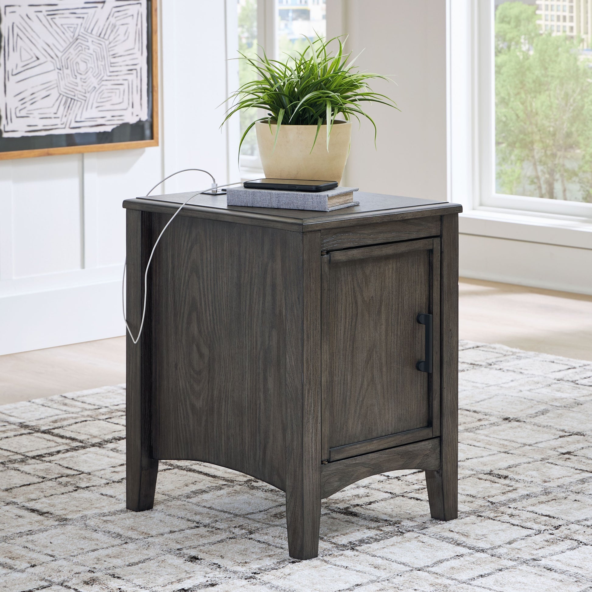 Cool and clean, yet warm and inviting. This chairside end table has so many standout qualities, making it an inspired choice for your dream decor. A prime example of “casual contemporary” style at its very best, the designer piece is dressed to impress with an embossed wood grain texture. Its cabinet conceals a shelf ideal for storing smaller items like your e-reader, TV remotes and other seat-side must-haves. With convenient USB charging ports, devices can be charged without having to get up. And the medium gray-brown finish with a blackened wood grain contrast is wonderfully easy on the eyes.