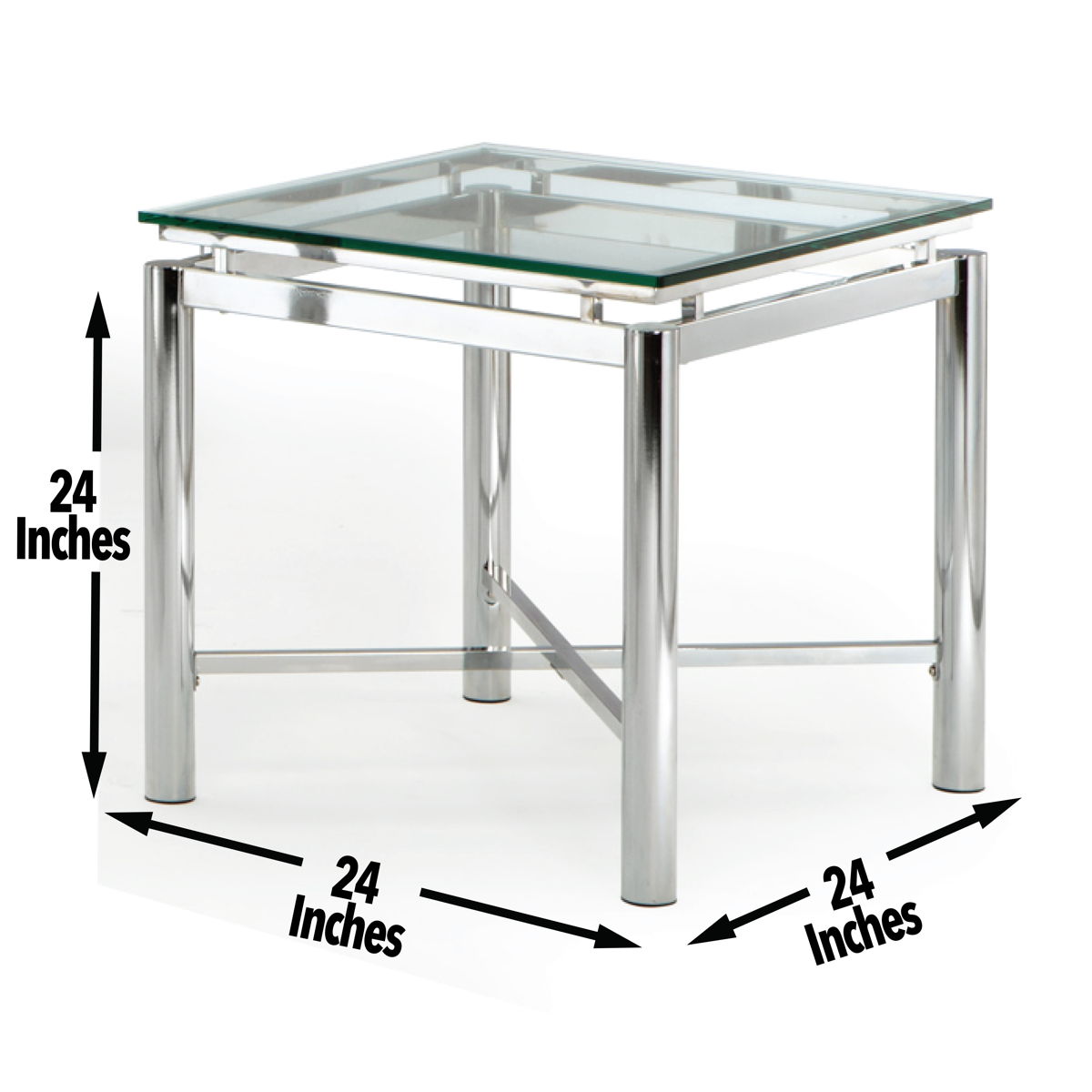 Bring perfection and brilliance to your home with the Nova End Table. The 12mm tempered glass top and chrome x pattern base will make this collection your rooms centerpiece for years to come.