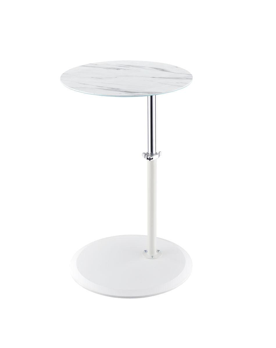 Orbit - 15.5" End Table With Height Adjustable Marble Textured Top - White