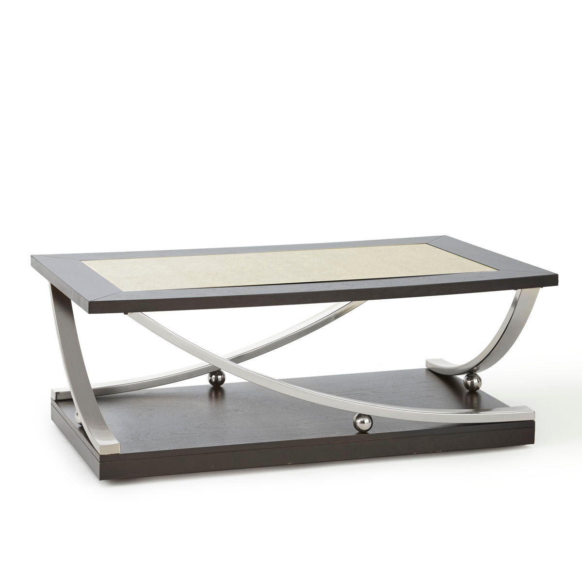 WIth its transitional styling, Ramsey creates quite a statement in any living area. Sweeping stainless steel support legs create a dramatic effect that is beautifully complemented by the antiqued mirror top insert. This dichotomy of old world meets new age gives the collection a classic, yet up-to-date feel that will brighten any room.