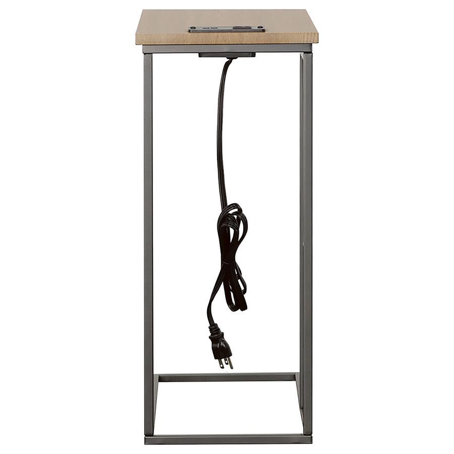 Rudy - Snack Table With Power Outlet - Gunmetal and Natural
