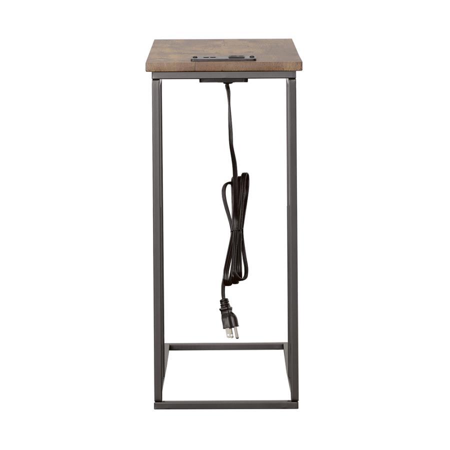 Rudy - Snack Table With Power Outlet - Gunmetal and Antique Brown