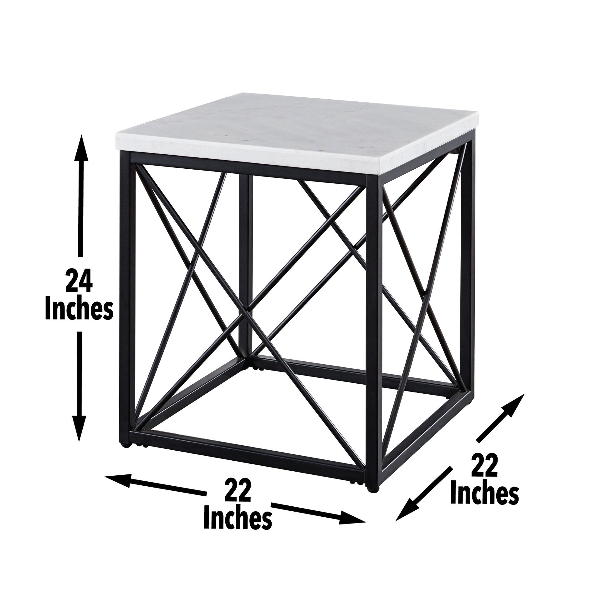 - Constructed of powder coated iron base with white marble top