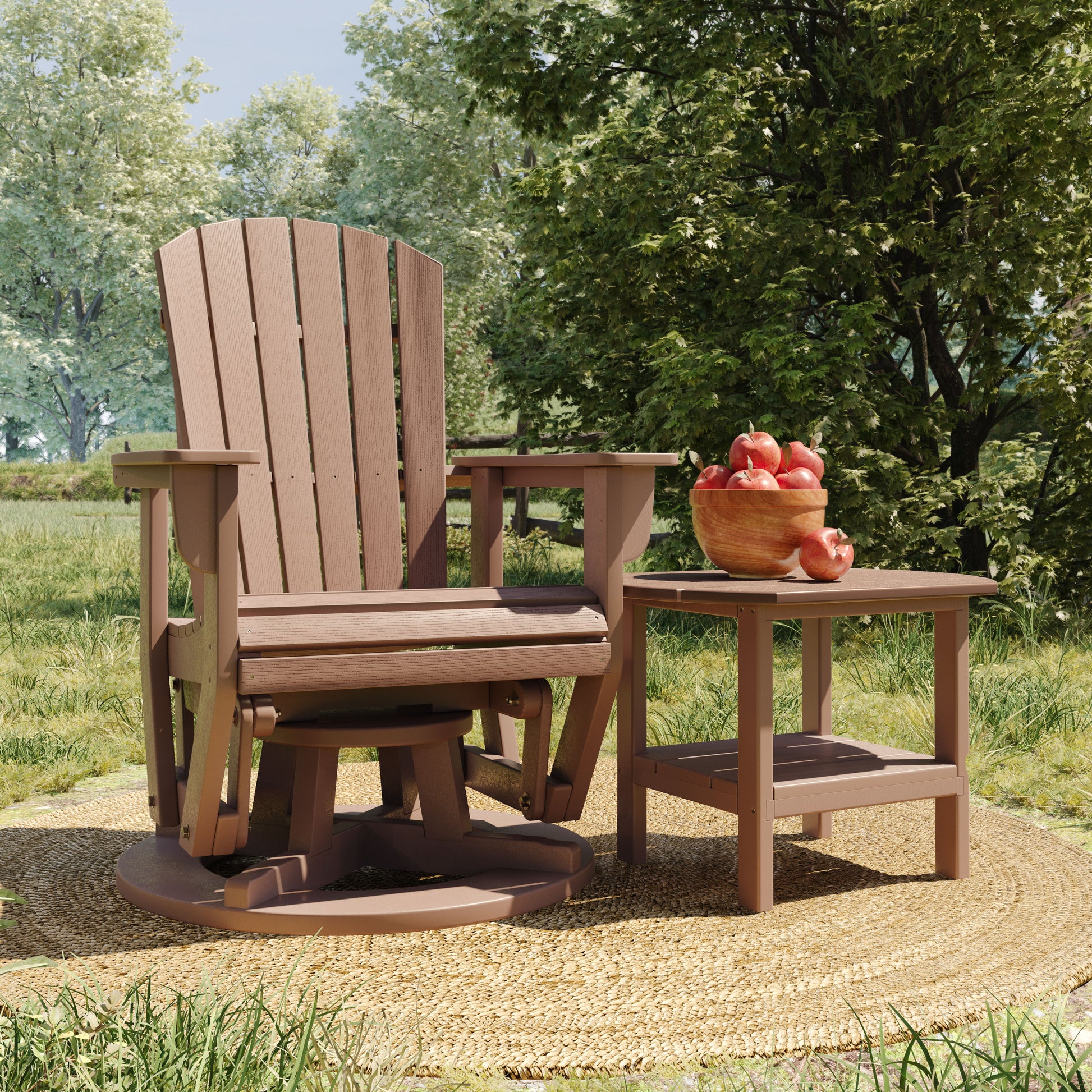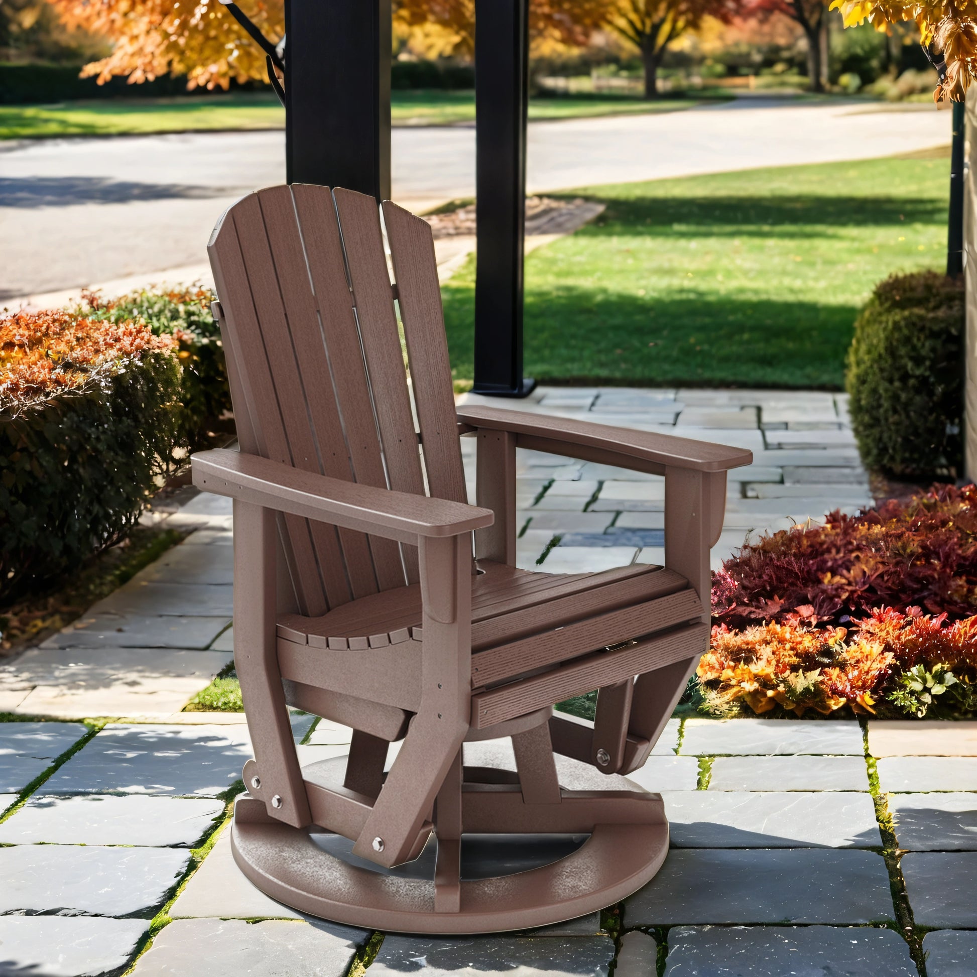 Adirondack Outdoor Swivel Glider Durable HDPE Poly Lumber For Pool, Patio, And Garden - Brown