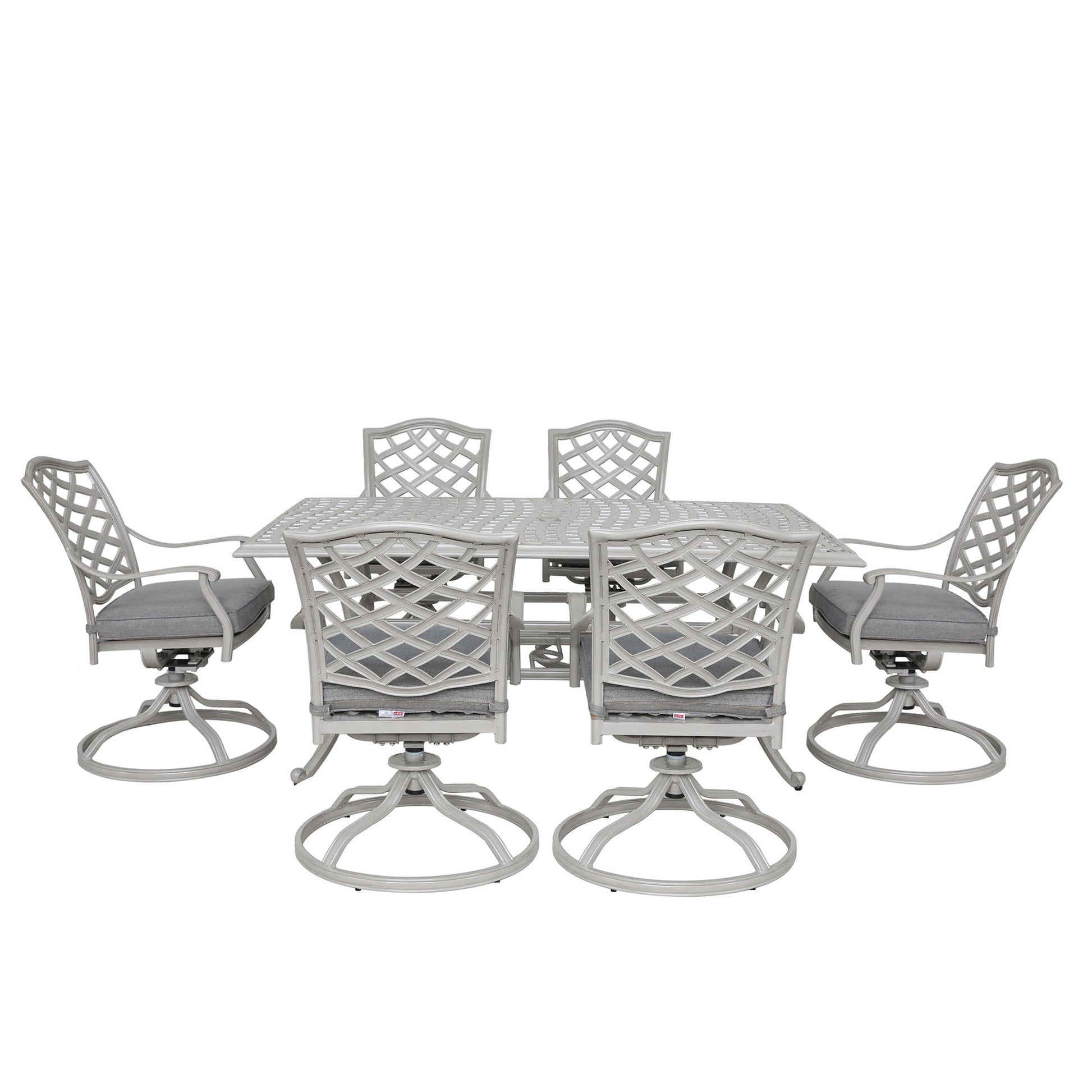 - Complete Dining Set: This 7-Piece Outdoor Patio Set Includes Six Comfortable Swivel Chairs And A Rectangular Table With An Umbrella Hole. It Provides Everything You Need To Create An Inviting Dining Space In Your Outdoor Area.