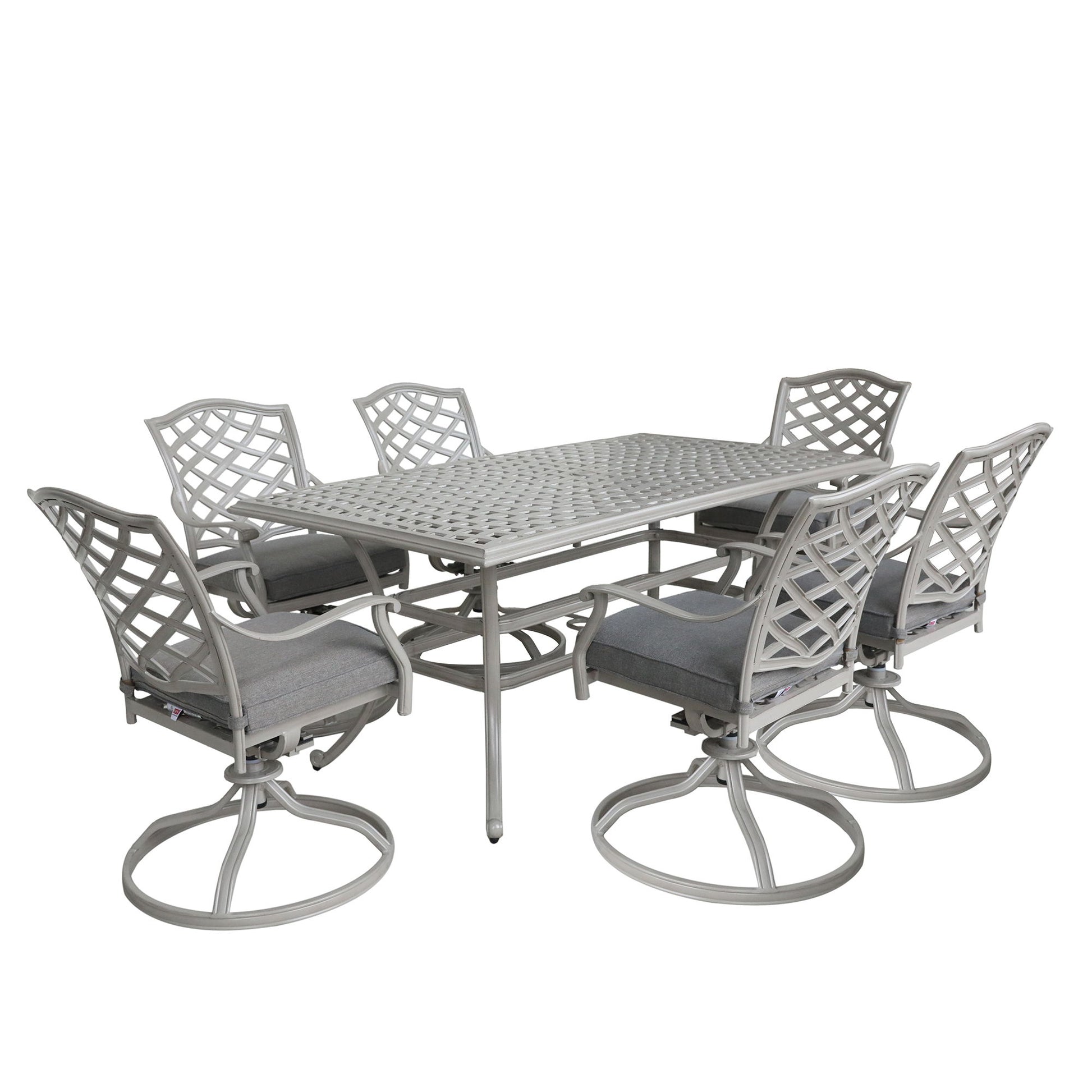 Modern Outdoor 7 Piece Aluminum Dining Set With Swivel Chairs - Basalt